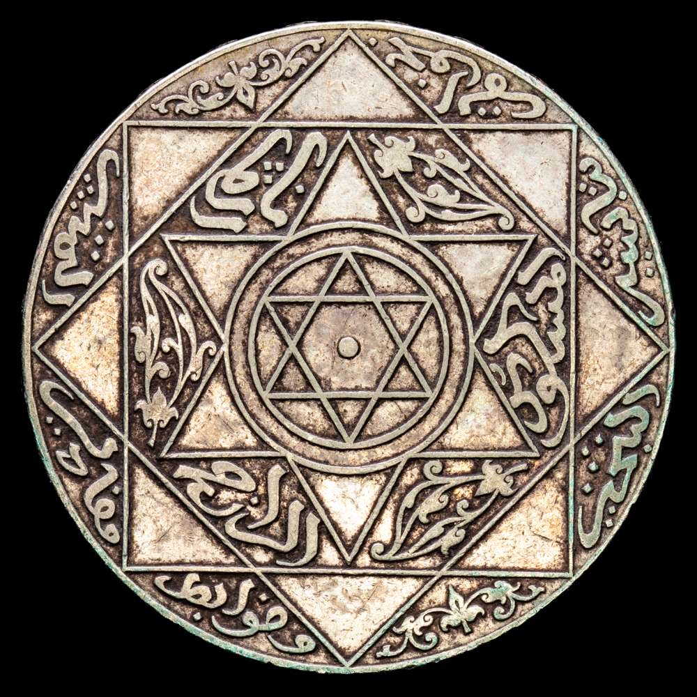 Marruecos. Rial o 10 dirhams. 1881, hegira 1299. París. Moulay al-Hasam I. KM8. 28,92 gramos. plata 900. XF.