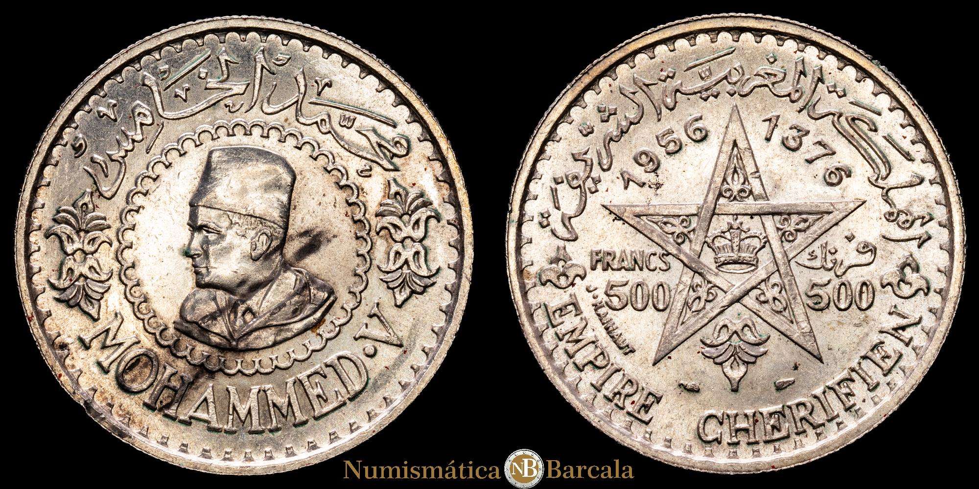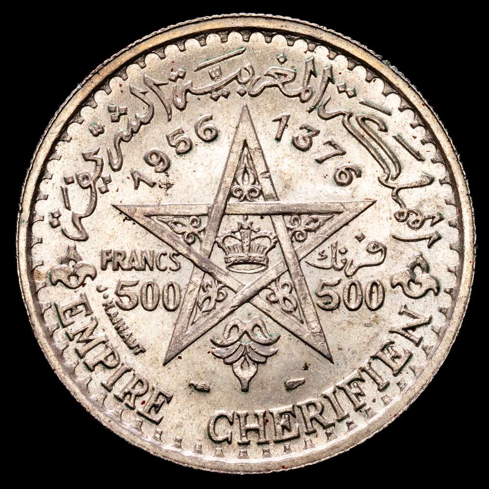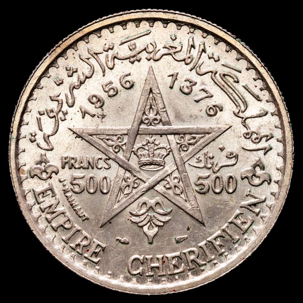 Marruecos, 500 francos, 1956, Hegira 1376, Mohammed V, Paris, Plata 900, 22,57 g. Y54. XF.
