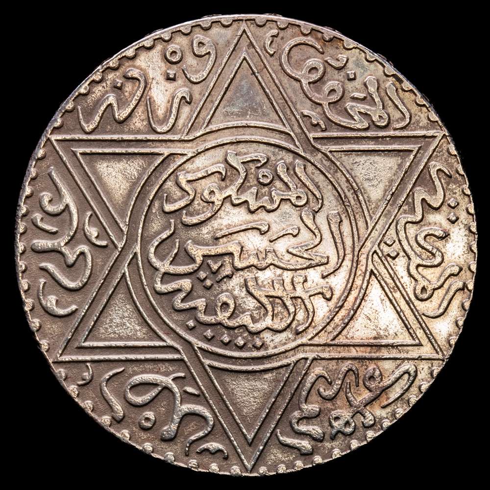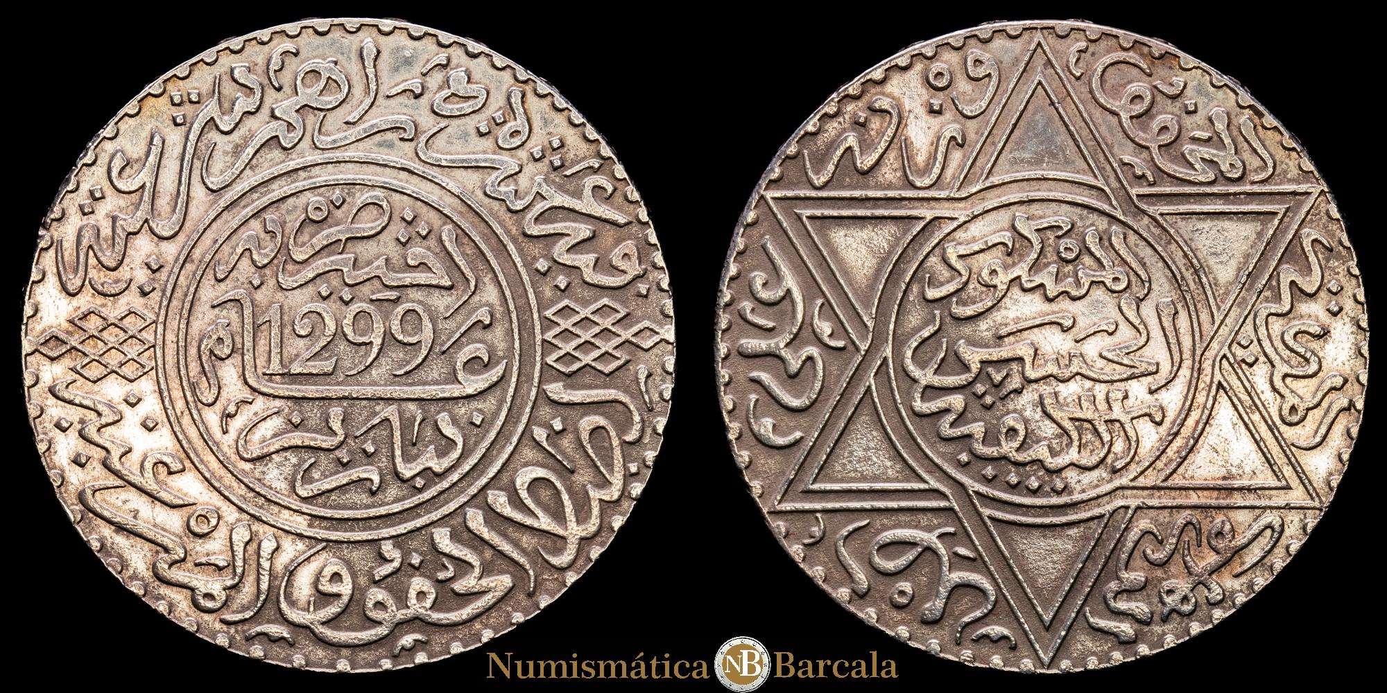 Numismática Barcala > Productos > Marruecos. Rial o 10 dirhams. 1881, hegira 1299. París. Moulay al-Hasam I. KM8. 28,92 gramos. plata 900. XF.
