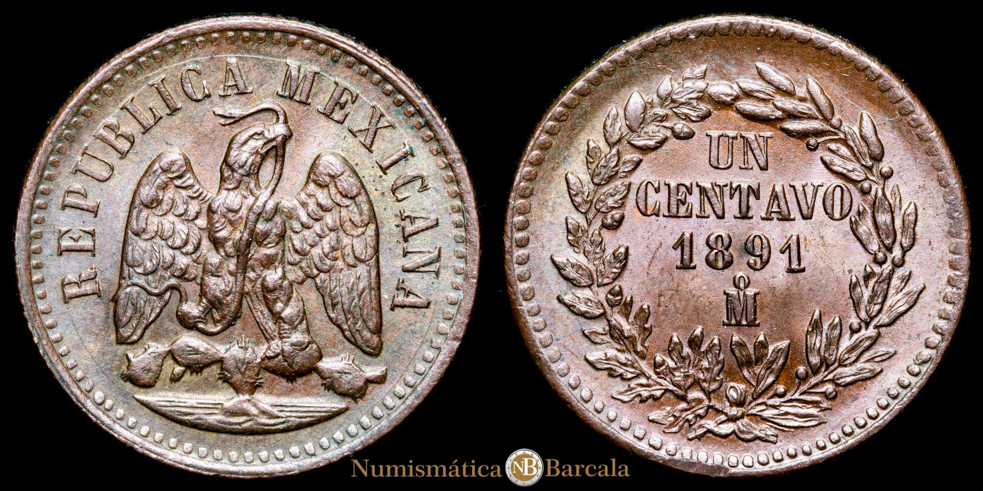Numismática Barcala > Productos > Mexico. 1 Centavo. (7,99 g.). Mexico. 1891. KM-391.6. UNC. Excelente condición
