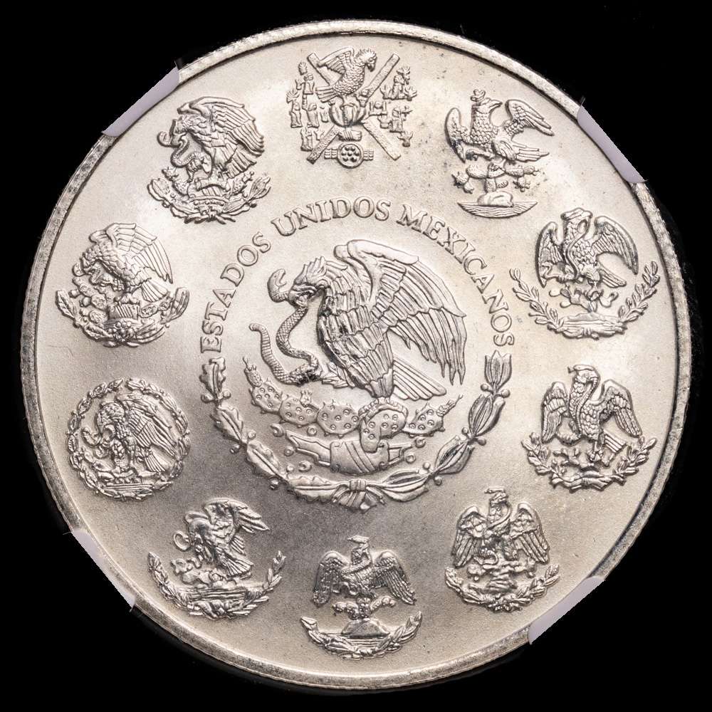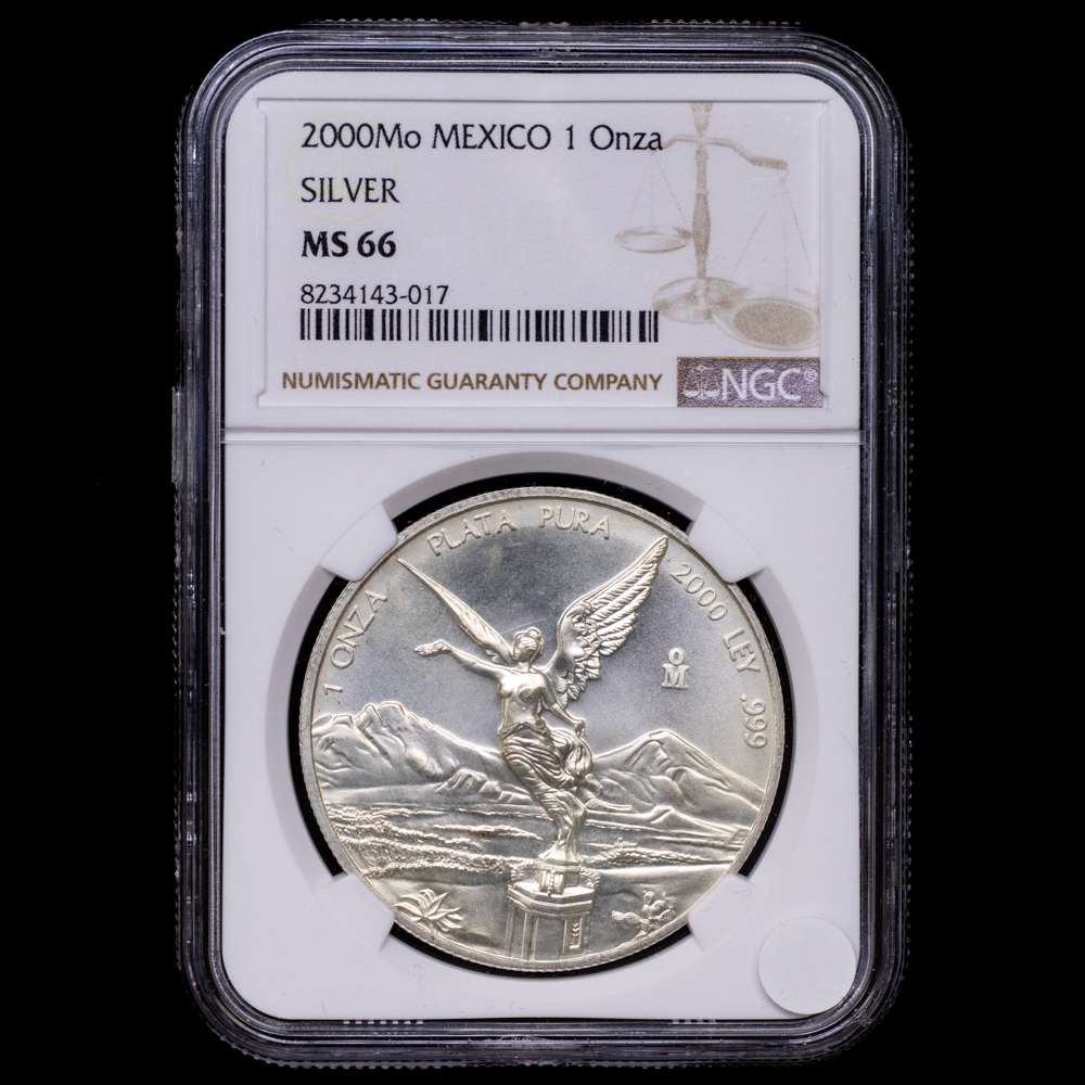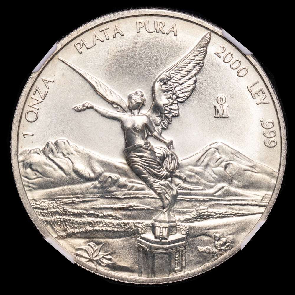 México. 1 onza. 2000. Ciudad de México. (Km-639). Ag. 31,1 gramos. Acabado satinado. Encapsulada por NGC como MS 66.