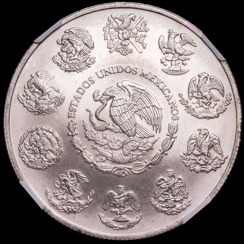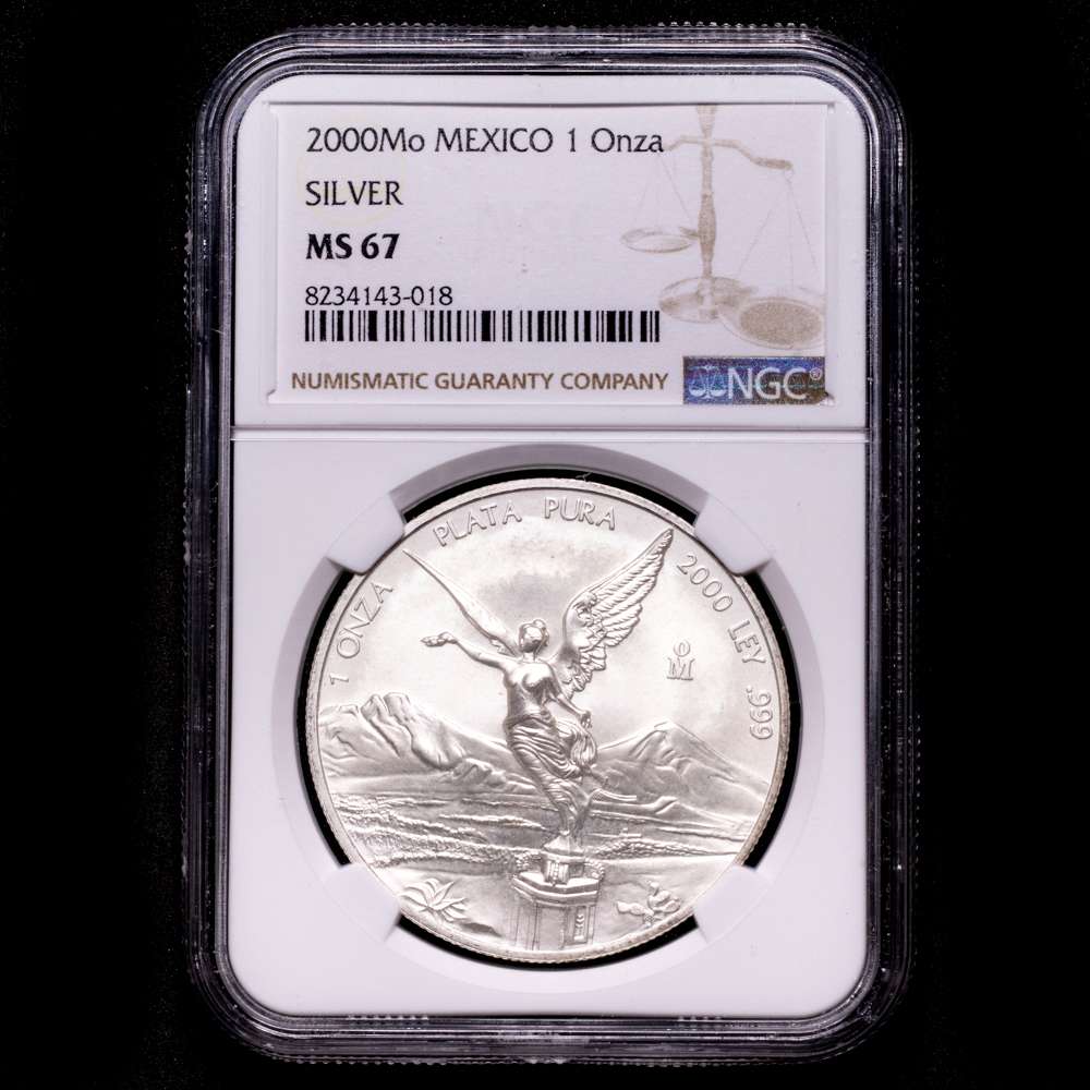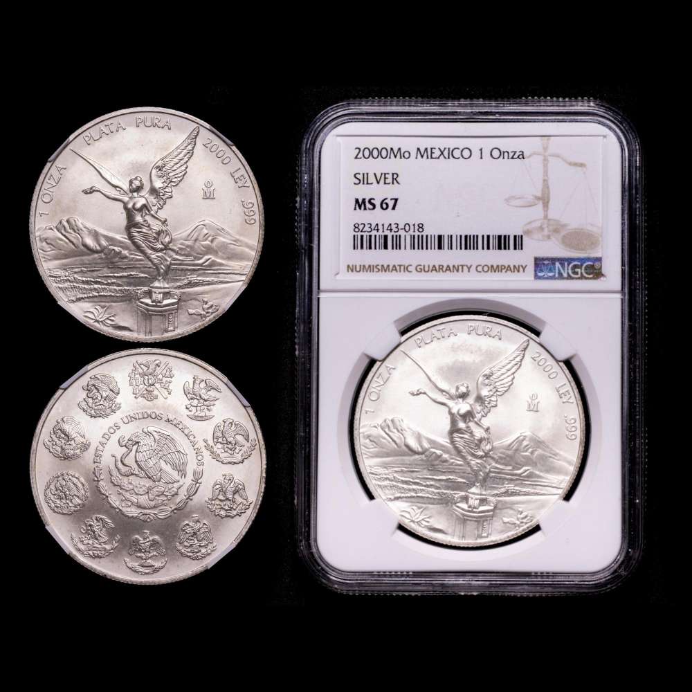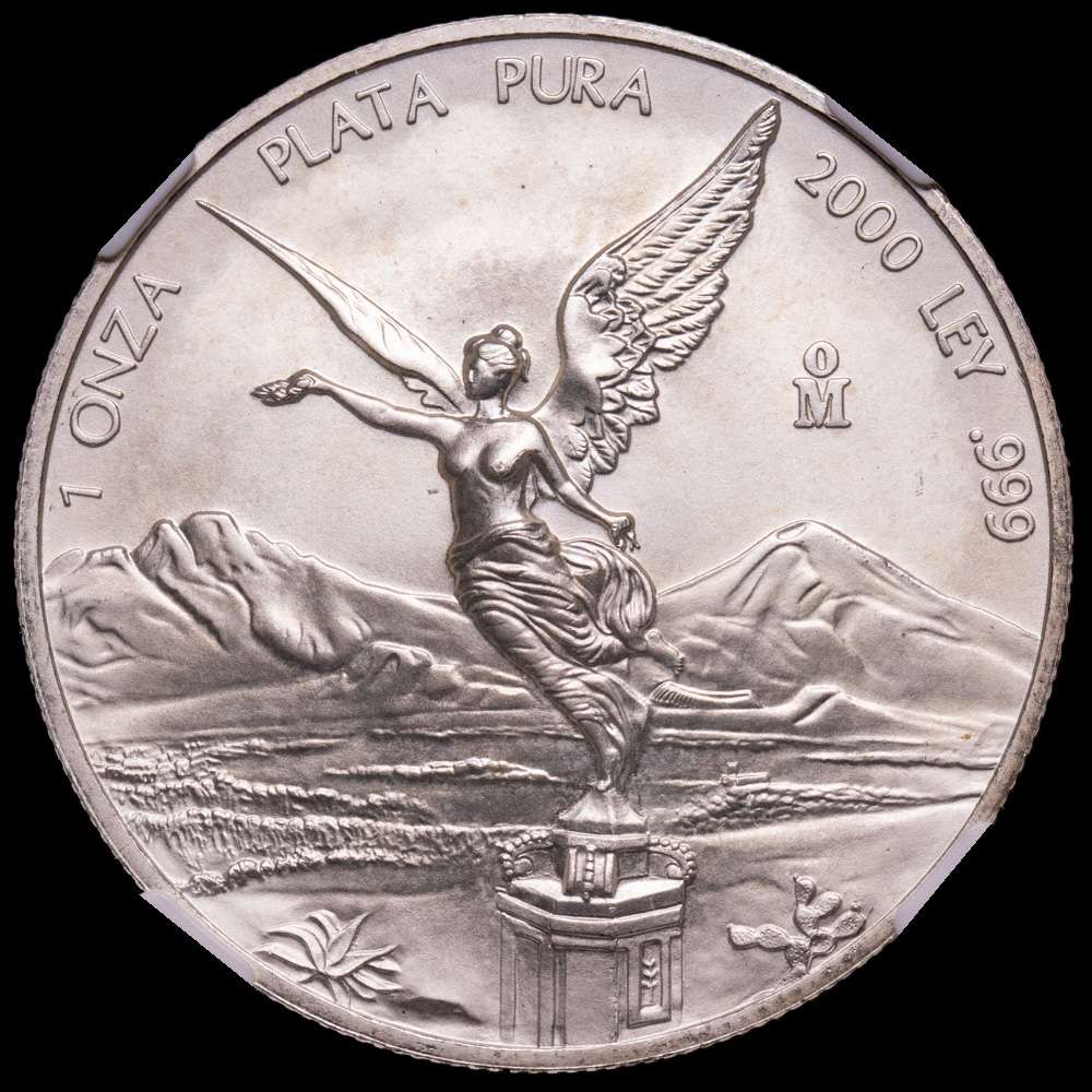 México. 1 onza. 2000. Ciudad de México. (Km-639). Ag. 31,1 gramos. Acabado satinado. Encapsulada por NGC como MS 67.