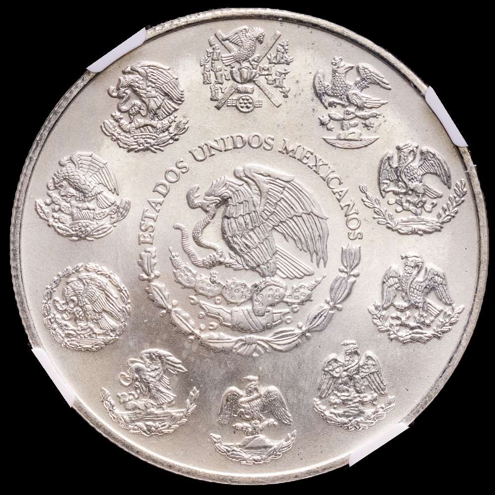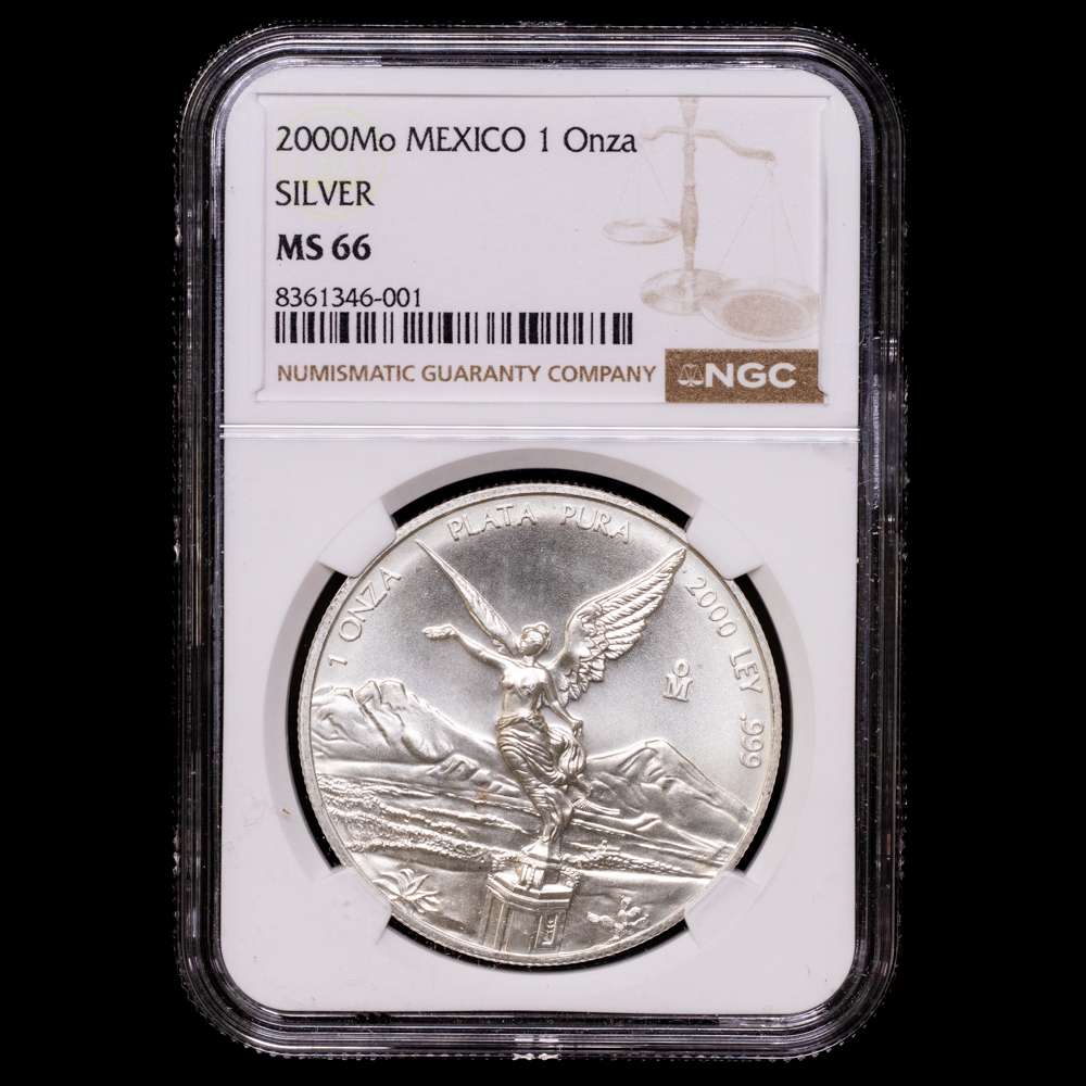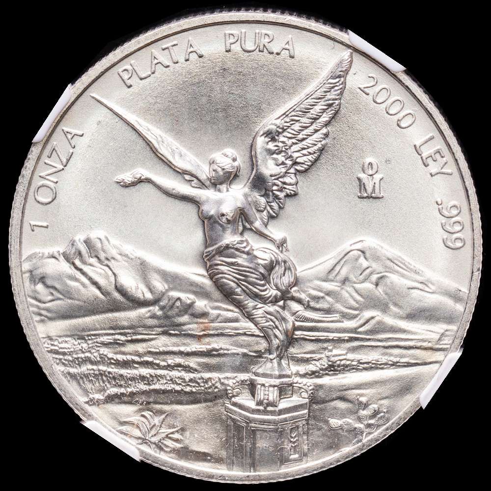 México. 1 onza. 2000. Ciudad de México. (Km-639). Ag. 31,1 gramos. Acabado satinado. Encapsulada por NGC como MS 66.