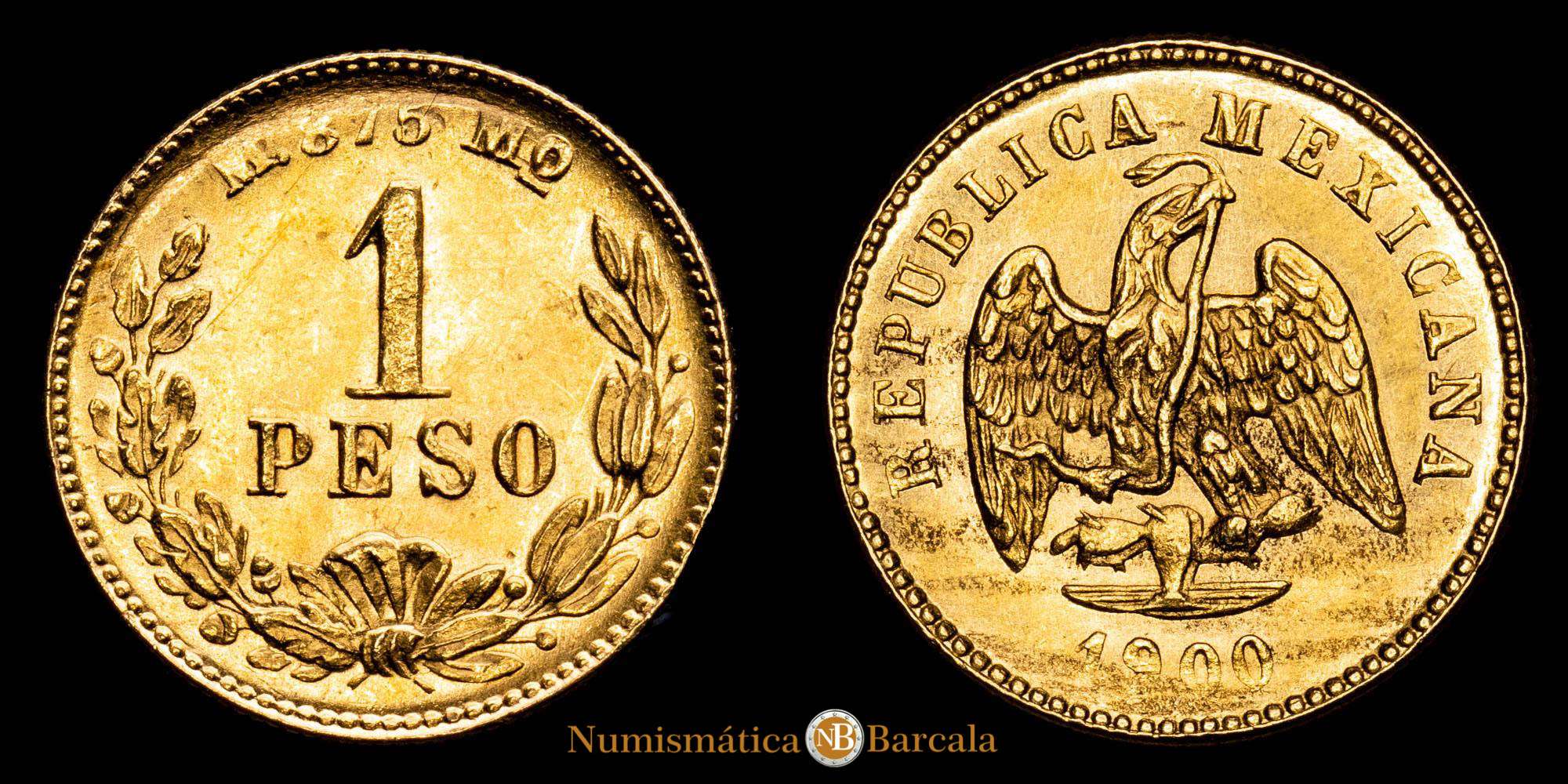 Numismática Barcala > Productos > México. 1 Peso. (1,69 g.). México. 1900. KM-410.5. SC. Brillo original