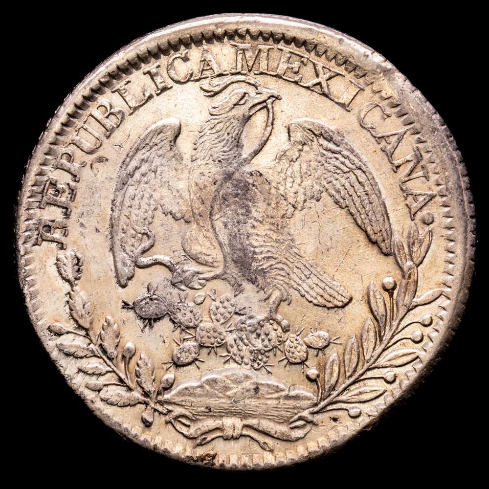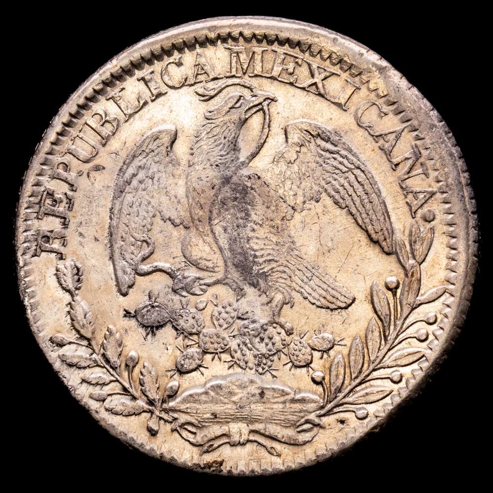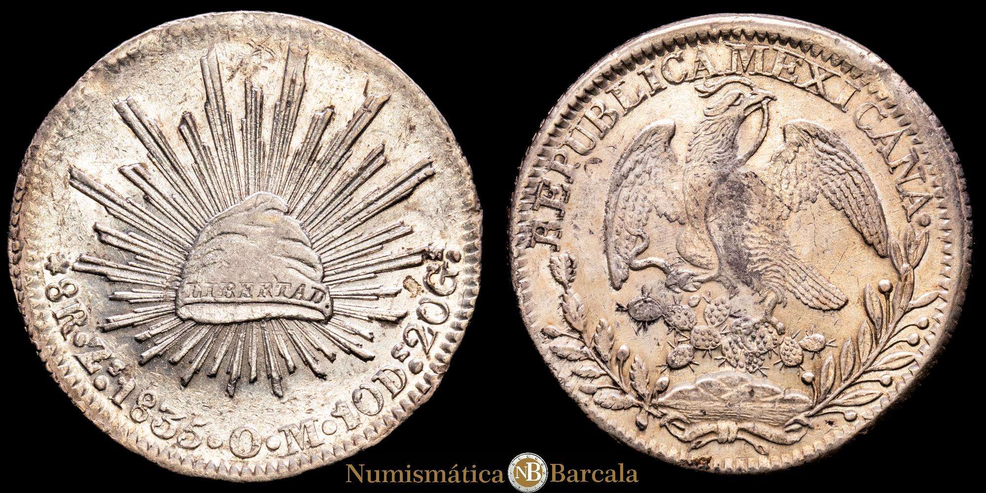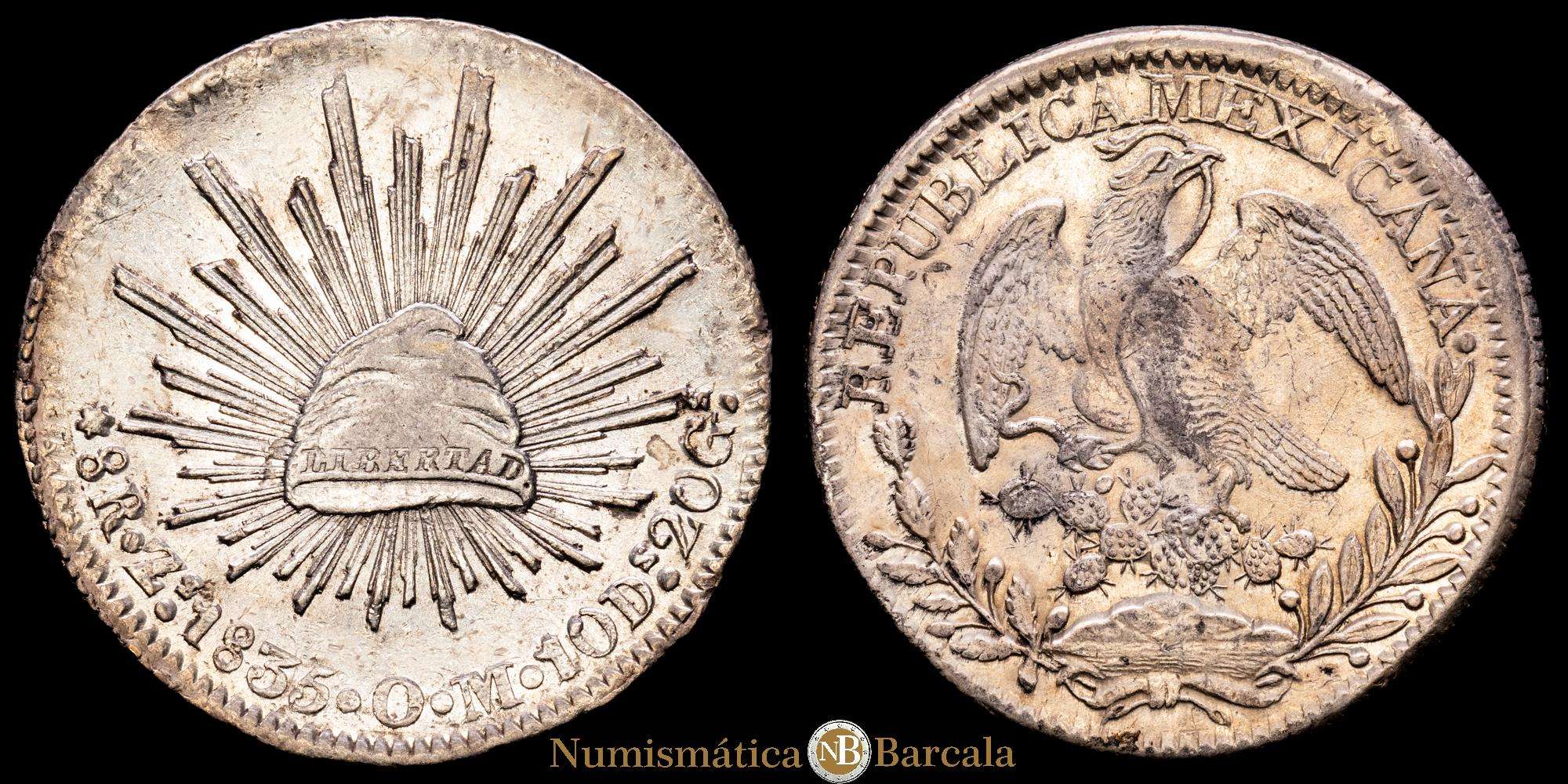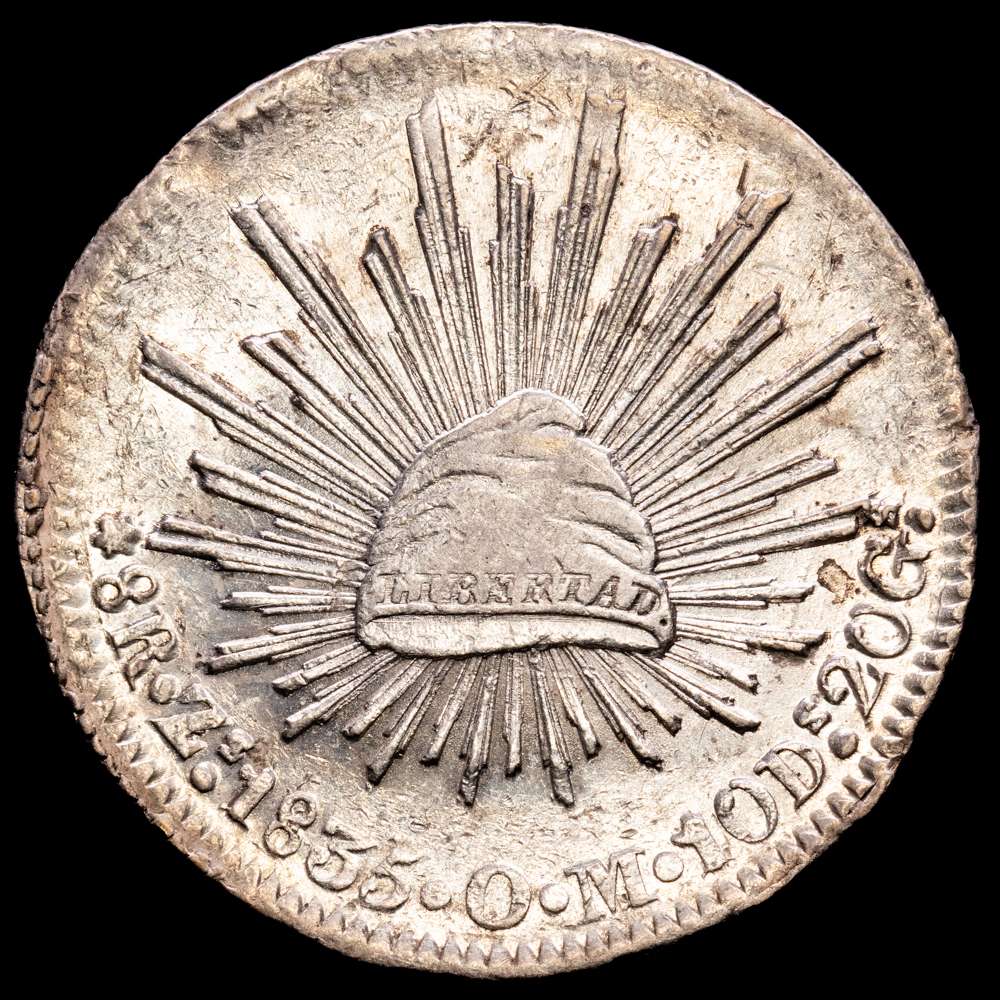 México. 8 reales. 1835. Zacatecas. OM. (Km-377.13). 28,08 grs, Ag. Parte del brillo original. XF.