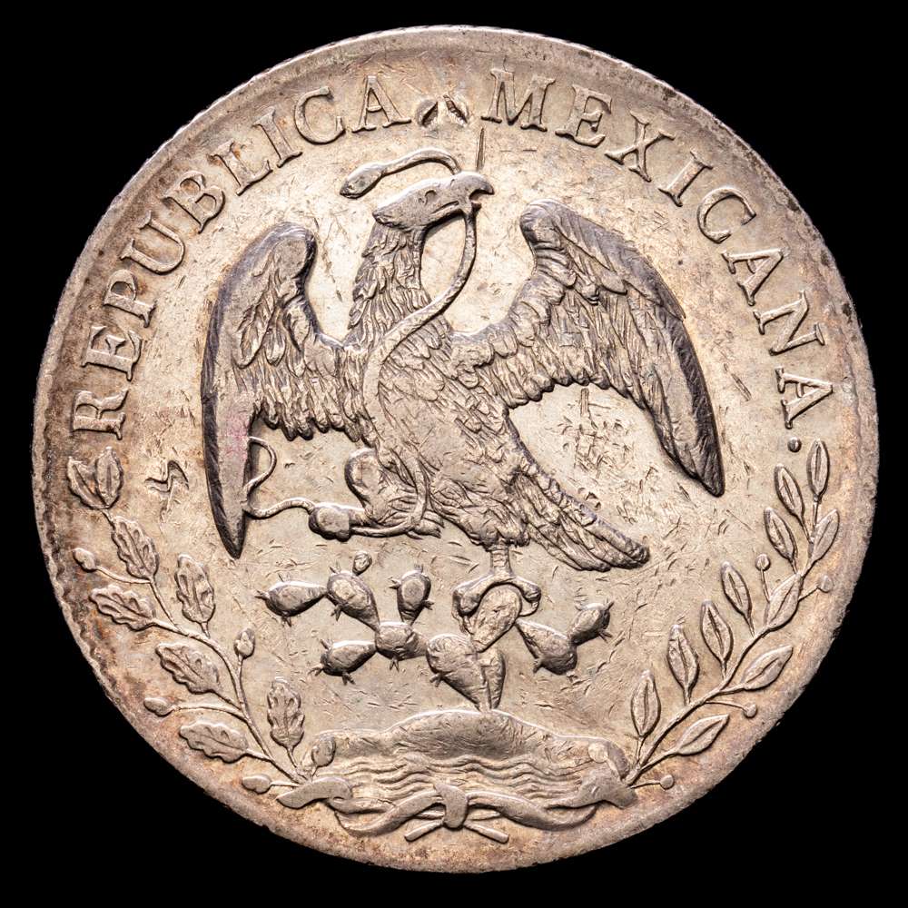 8 Reales. 1893. CULIACÁN. A.M. 27,24 grs. AR. Pátina irisada. KM-377.3. EBC.