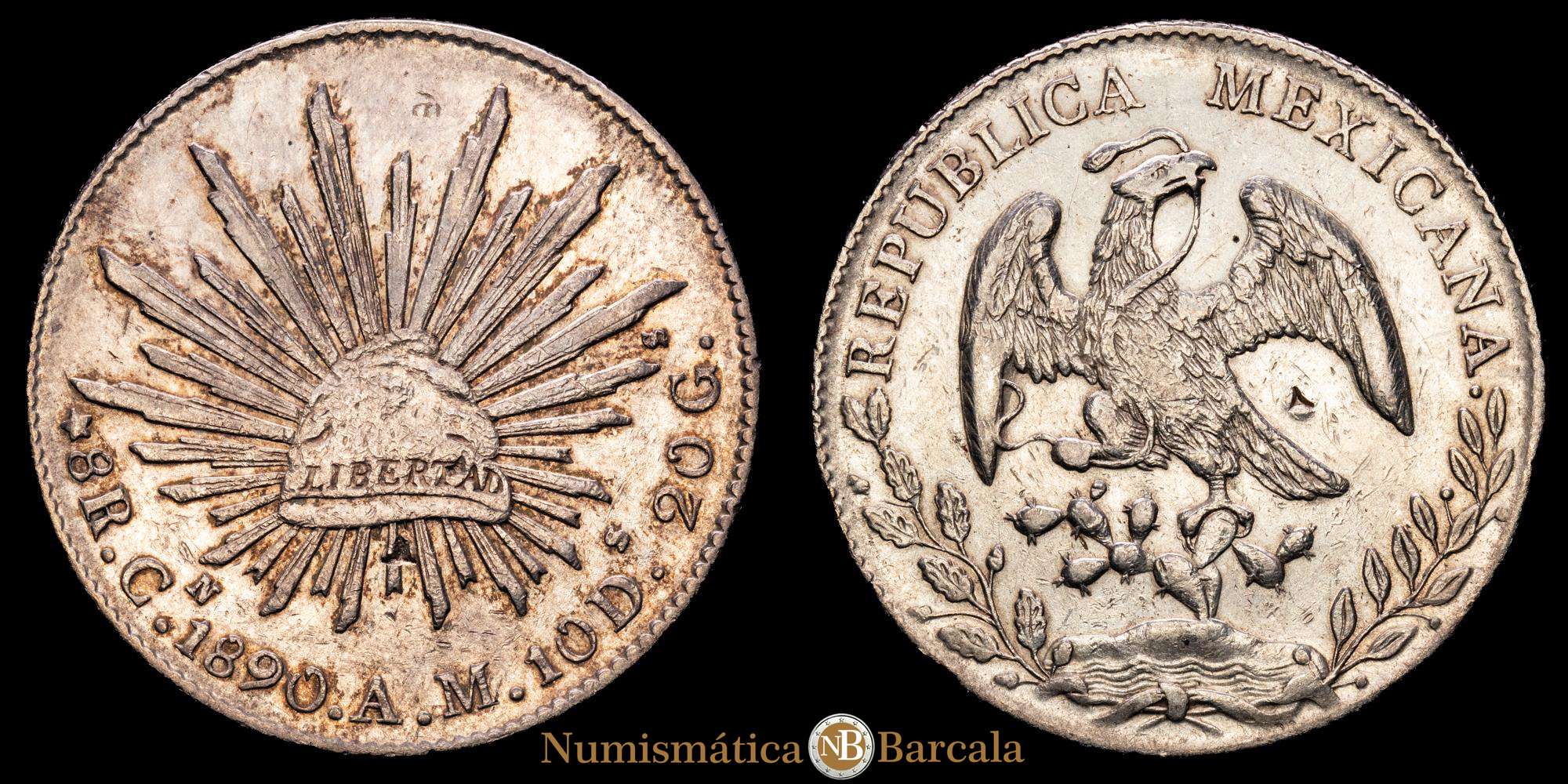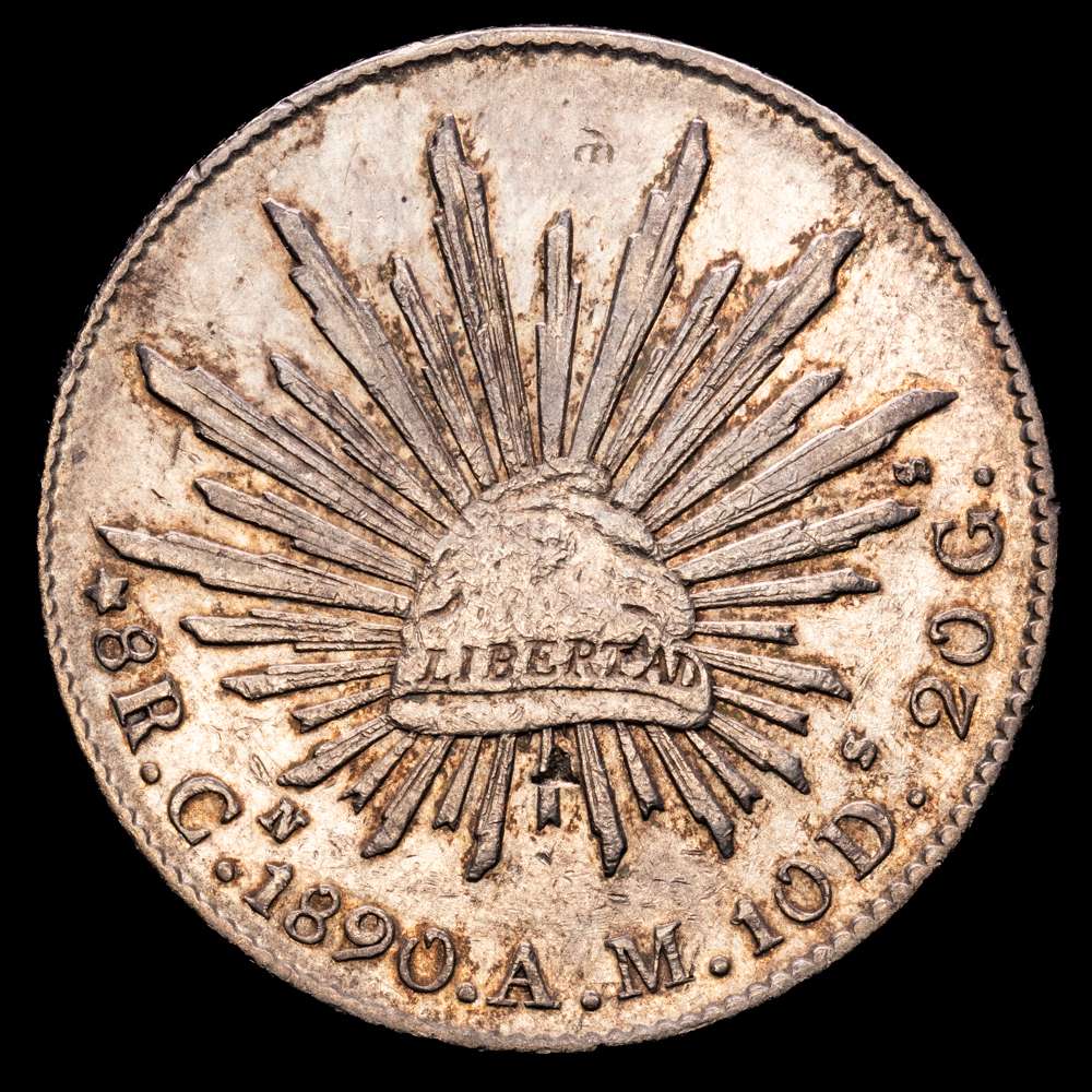 México. 8 Reales. (26,71 g.). Culiacán. 1890. A·M. KM-377.3. Tono. VF+.