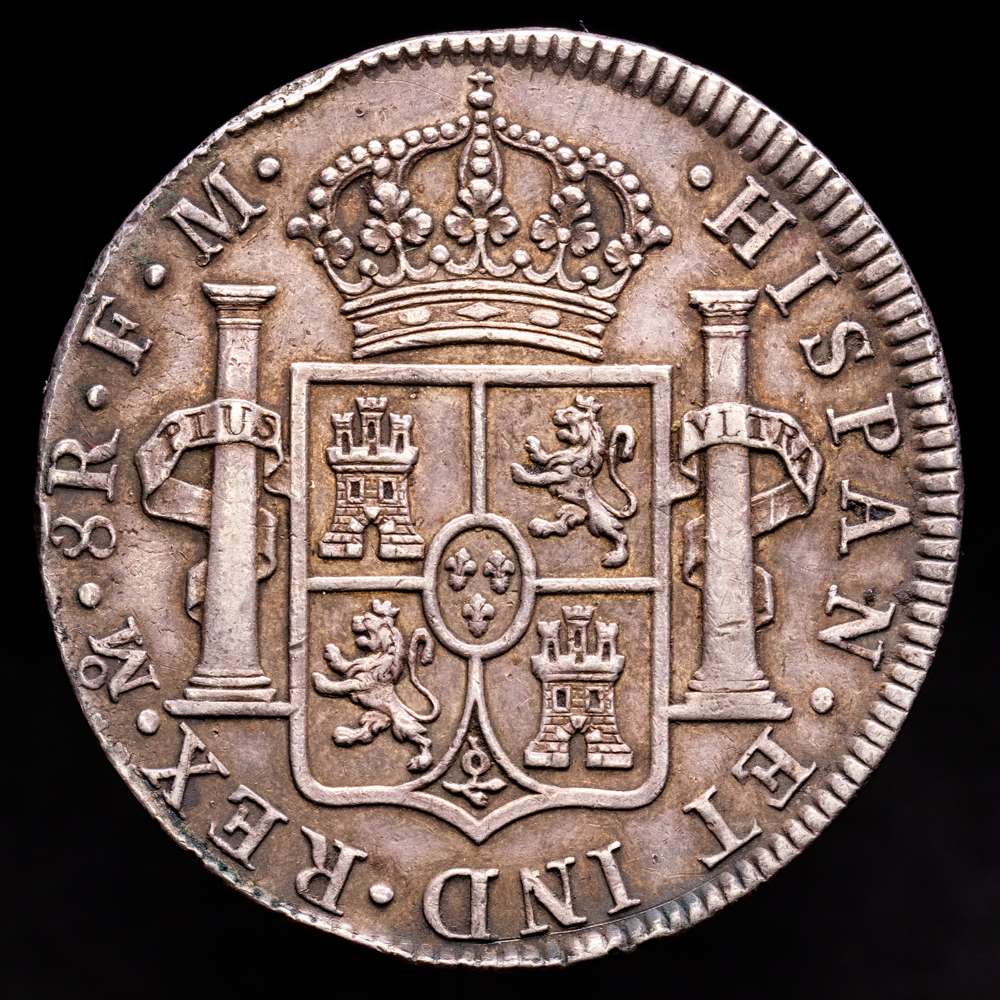 Numismática Barcala > Productos > México, Carlos III, 8 Reales 1776 Mo FM, Casa de la Moneda de la Ciudad de México, Plata, KM-106.2,Cal-1110, 26,87 gramos. Bella pátina. VF+.