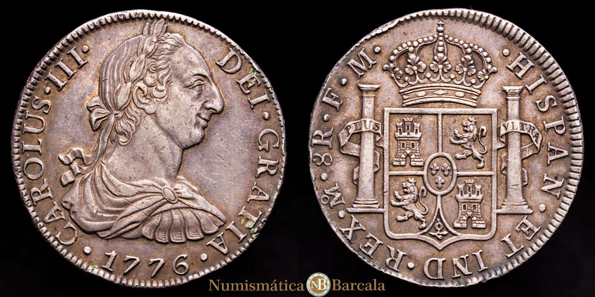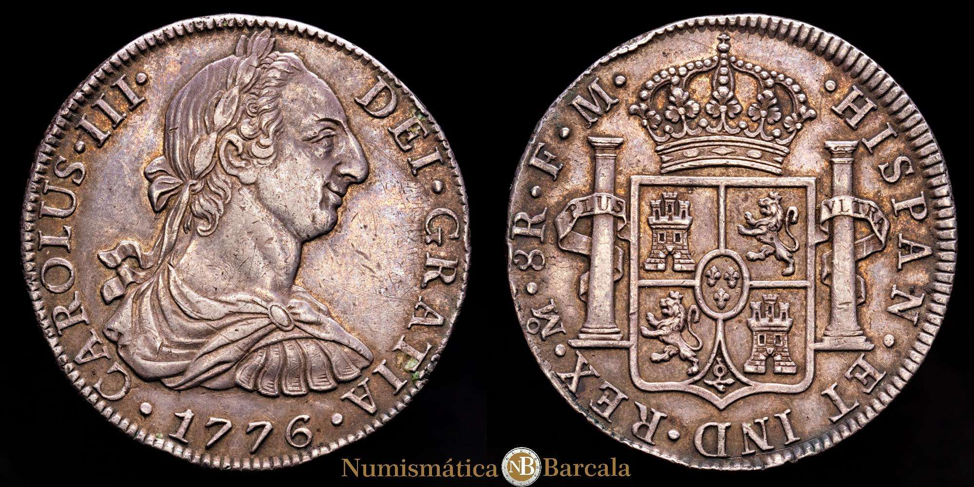 México, Carlos III, 8 Reales 1776 Mo FM, Casa de la Moneda de la Ciudad de México, Plata, KM-106.2,Cal-1110,