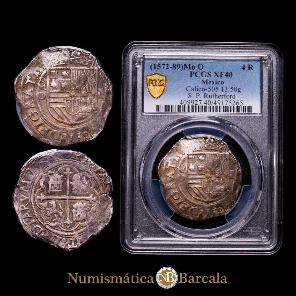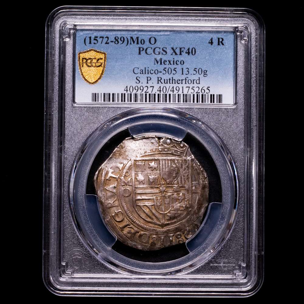 MÉXICO. Cob 4 Reales, ND (1572-89)-Mo O. Casa de Moneda de la Ciudad de México. Felipe II. PCGS EF-40.
