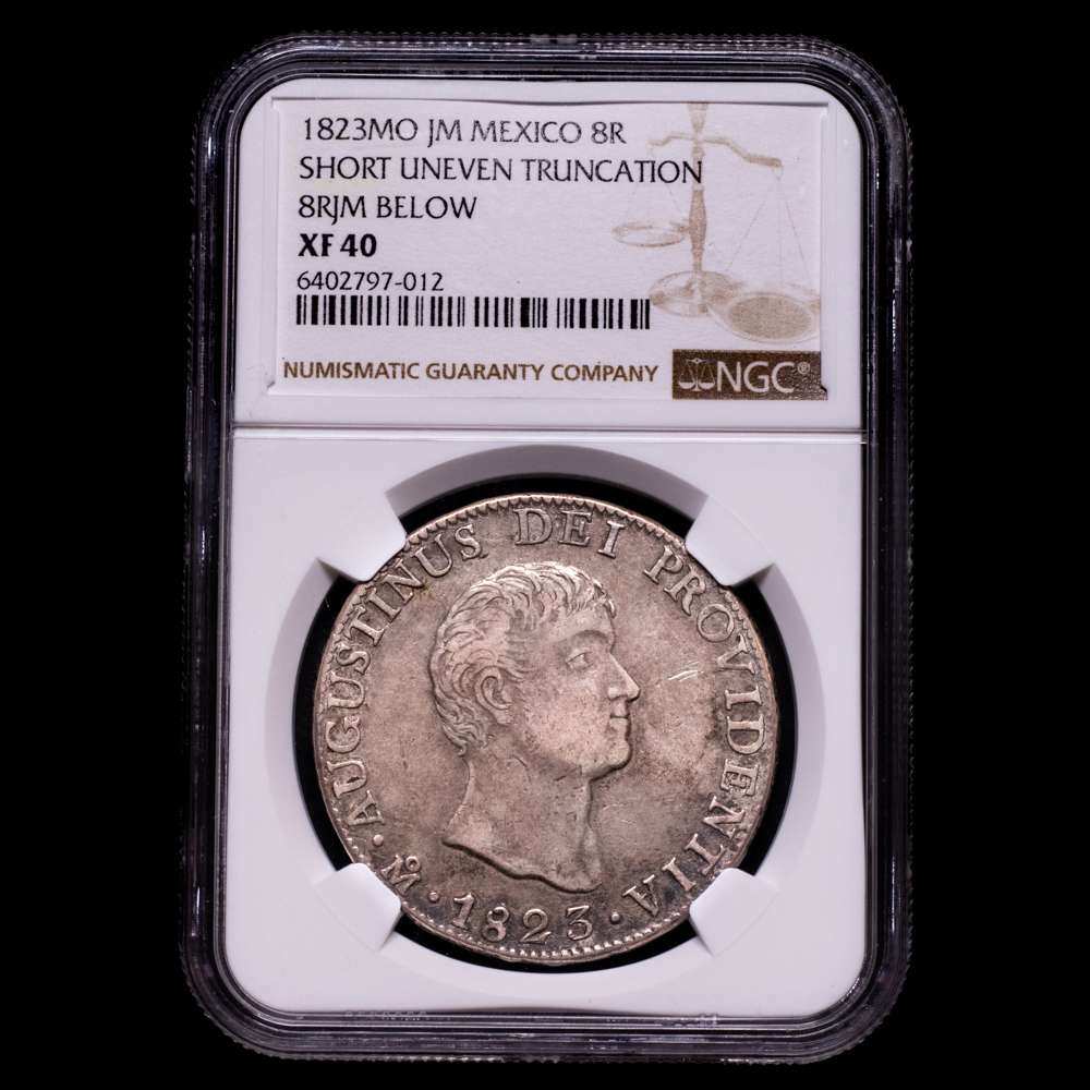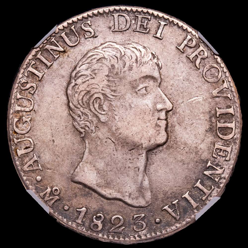 México Primer Imperio 1823 Mo JM 8 Reales – Agustín I Plata (.903) Casa de la Moneda de la Ciudad de México 27.07g.