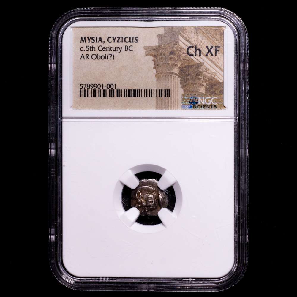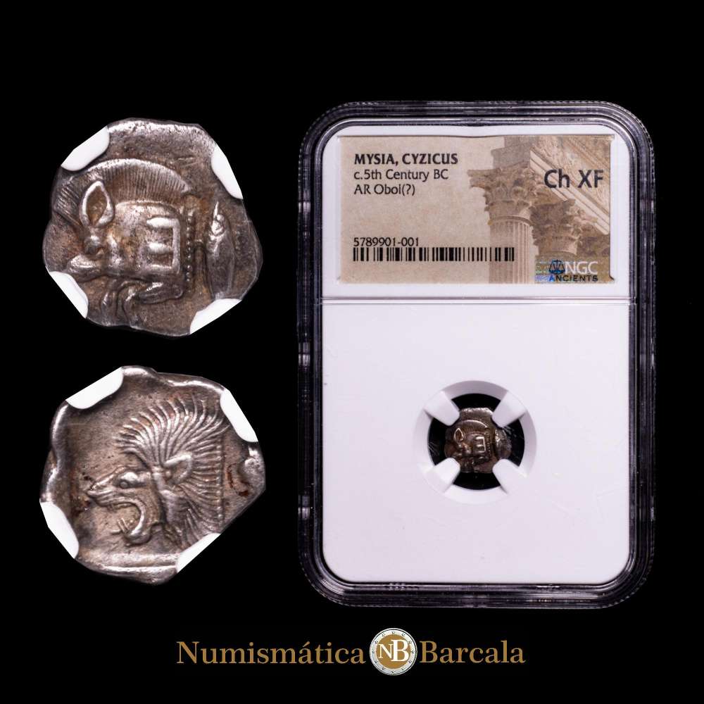 Numismática Barcala > Productos > MYSIA. Cícico. Ca. siglo V a. C. Óbolo AR (10 mm, 8 h). Von Fritze II 9. SNG Kayhan 54. NGC Ch XF.