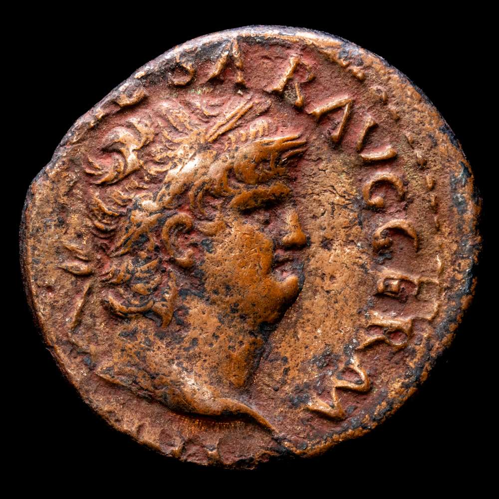 Anv.: IMP NERO CAESAR AVG GERM. Cabeza de Nerón, laureado, a la derecha.