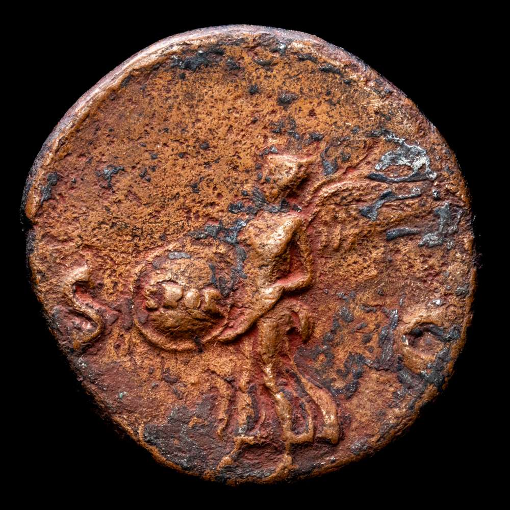 Rev.: S C. Victoria, alada, vestida, moviéndose hacia la izquierda, sosteniendo en ambas manos un escudo con la inscripción SPQ R.