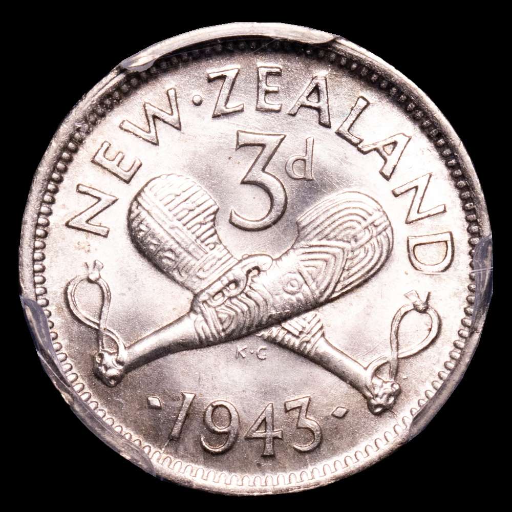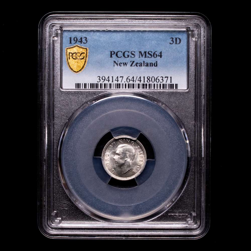 Nueva Zelanda – George VI. 3 D. New Zealand. 1943. Encapsulda po PCGS como MS64.