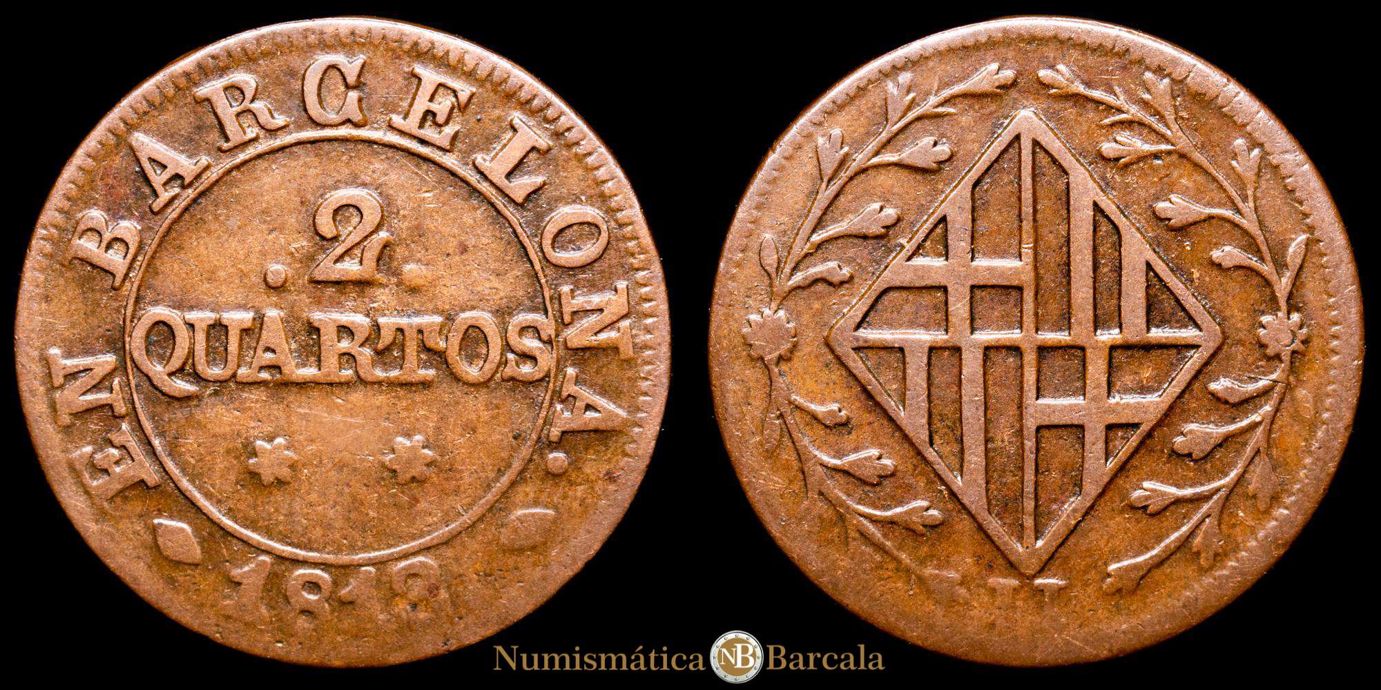Ocupación Napoleonica Catalunya. 2 Quartos. (3,98 g.). Barcelona. 1813. AC-12. MBC+.