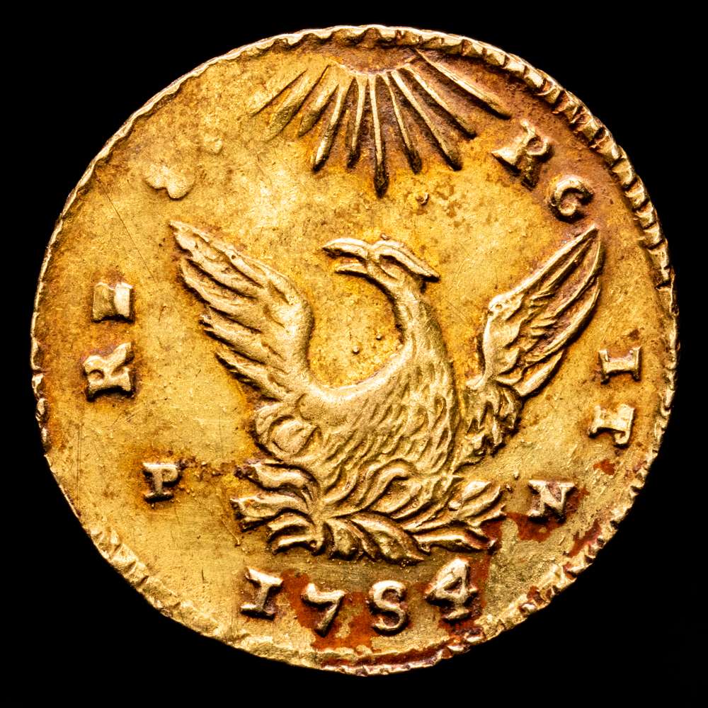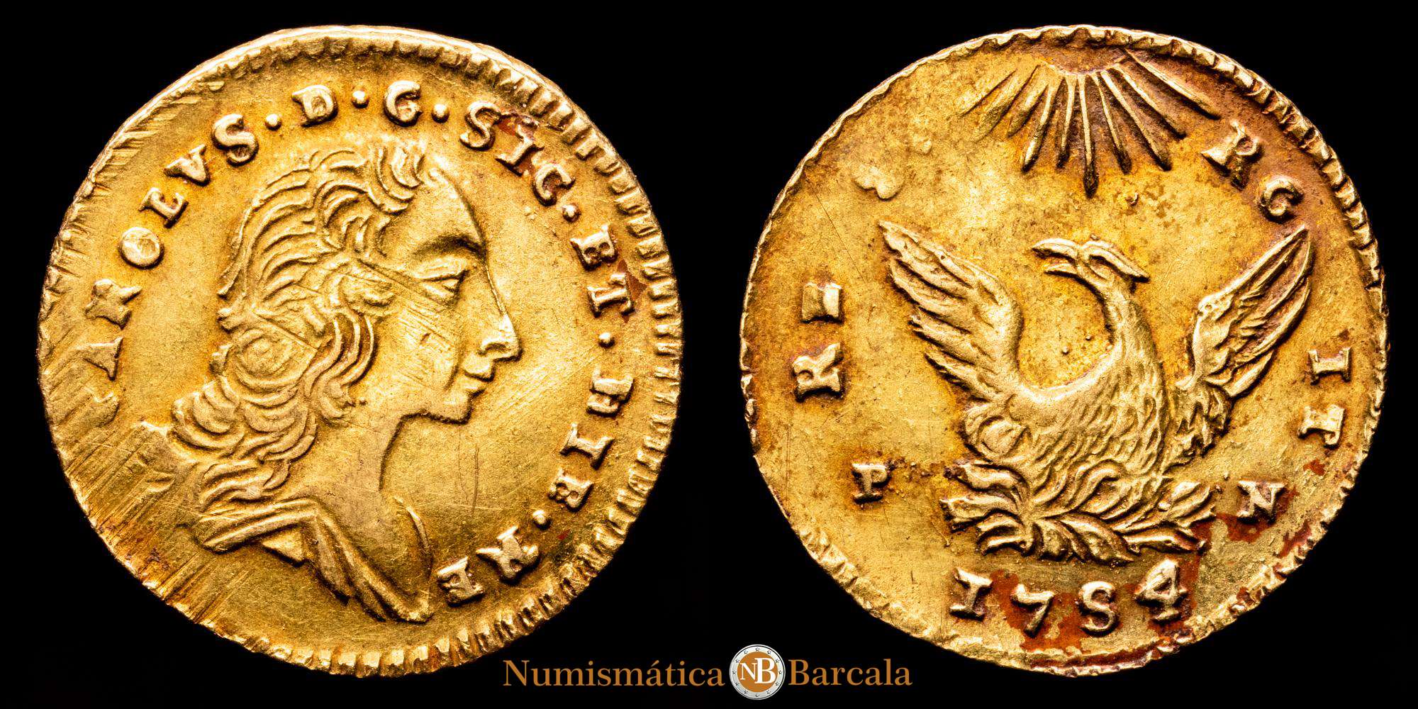 Numismática Barcala > Productos > Palermo, Carlo di Borbone (1734-1759), Oncia d’oro 1754-PN, Au 22 mm 4,39 g, GIG-29. VF+.