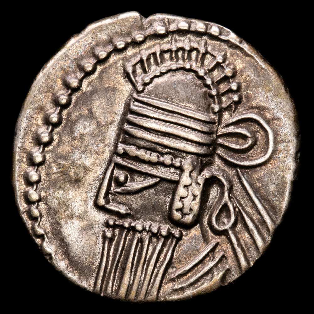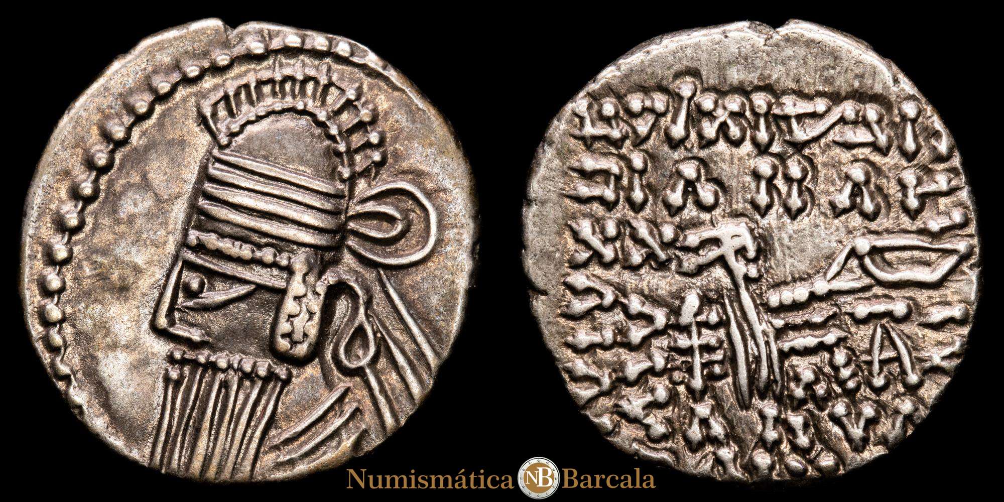 Numismática Barcala > Productos > PARTA – Reino de los Arsácidas Vologases IV (147-191). Dracma (3,85 g), Ecbatana. Sellwood 84.132, Shore 434. XF. Suave pátina.
