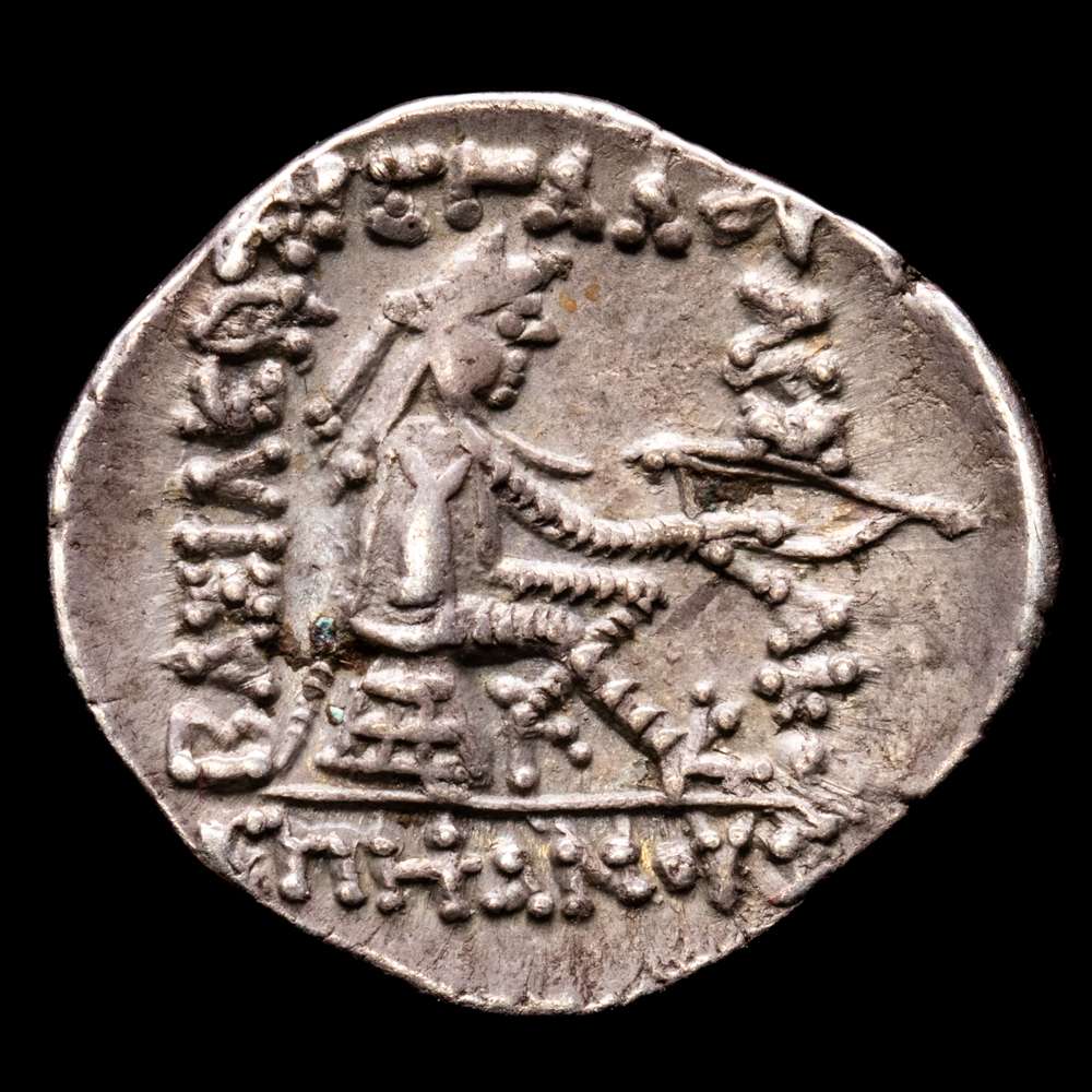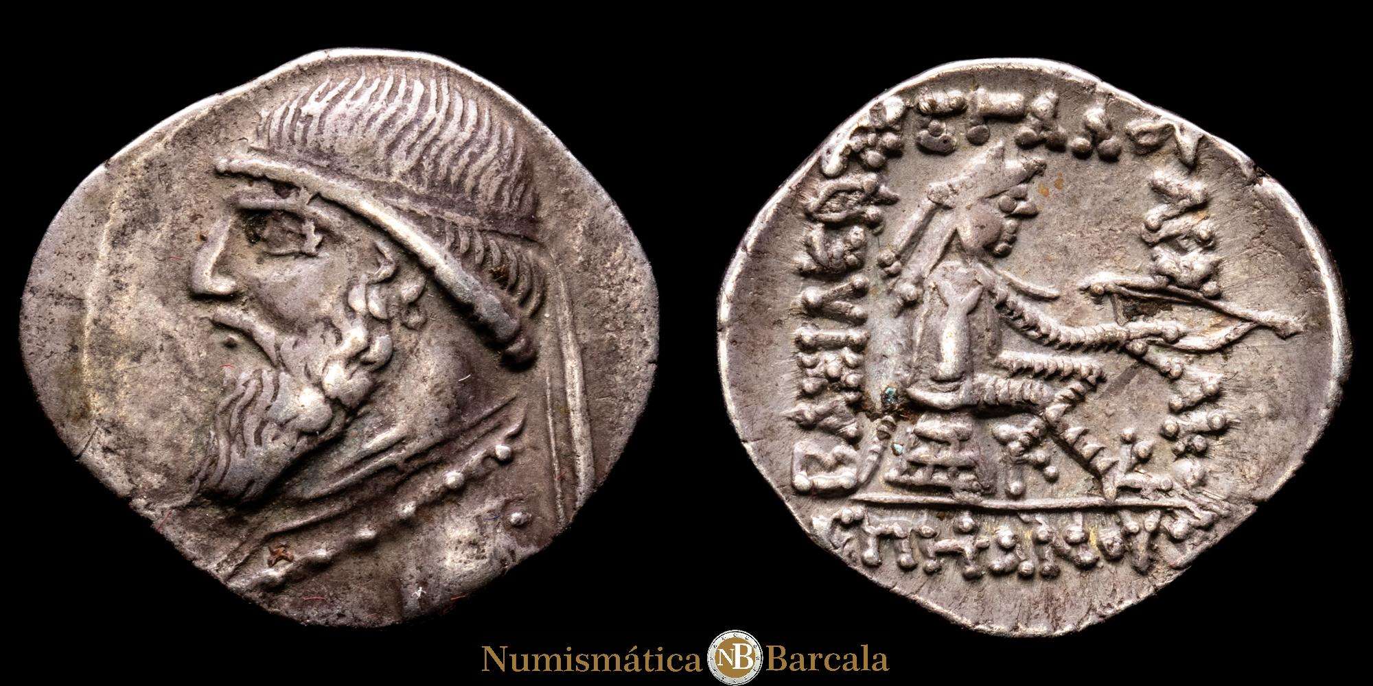 GRECIA ANTIGUA. Reyes de Partia. Mitrídates II (121-91 aC). Dracma. Rhagas. AR 3,57 gramos. 19,4 milímetros. SEPT-27.1. Muy buena conservación.