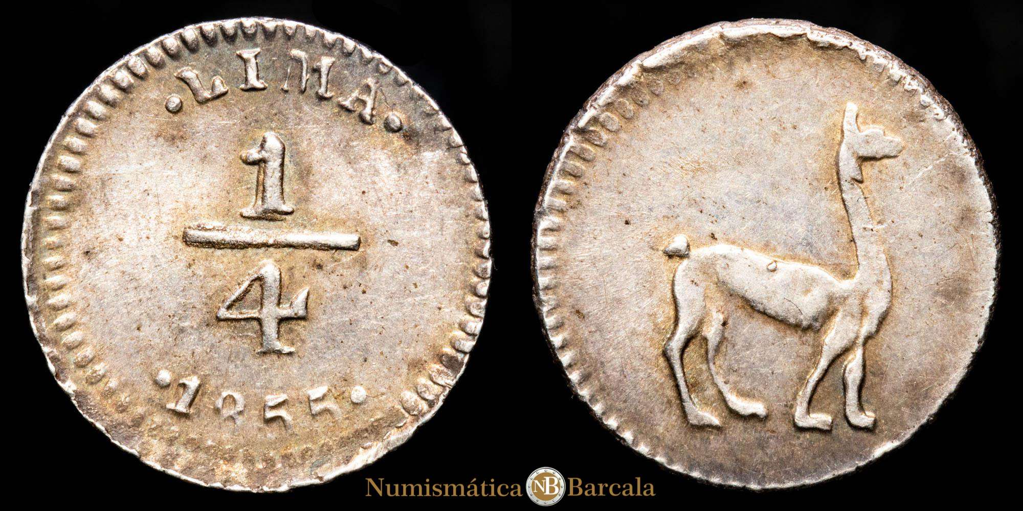 Numismática Barcala > Productos > Perú. 1/4 de Real. (0,81 g.). Lima. 1855. KM-143.1. AU-53. Restos de brillo original.