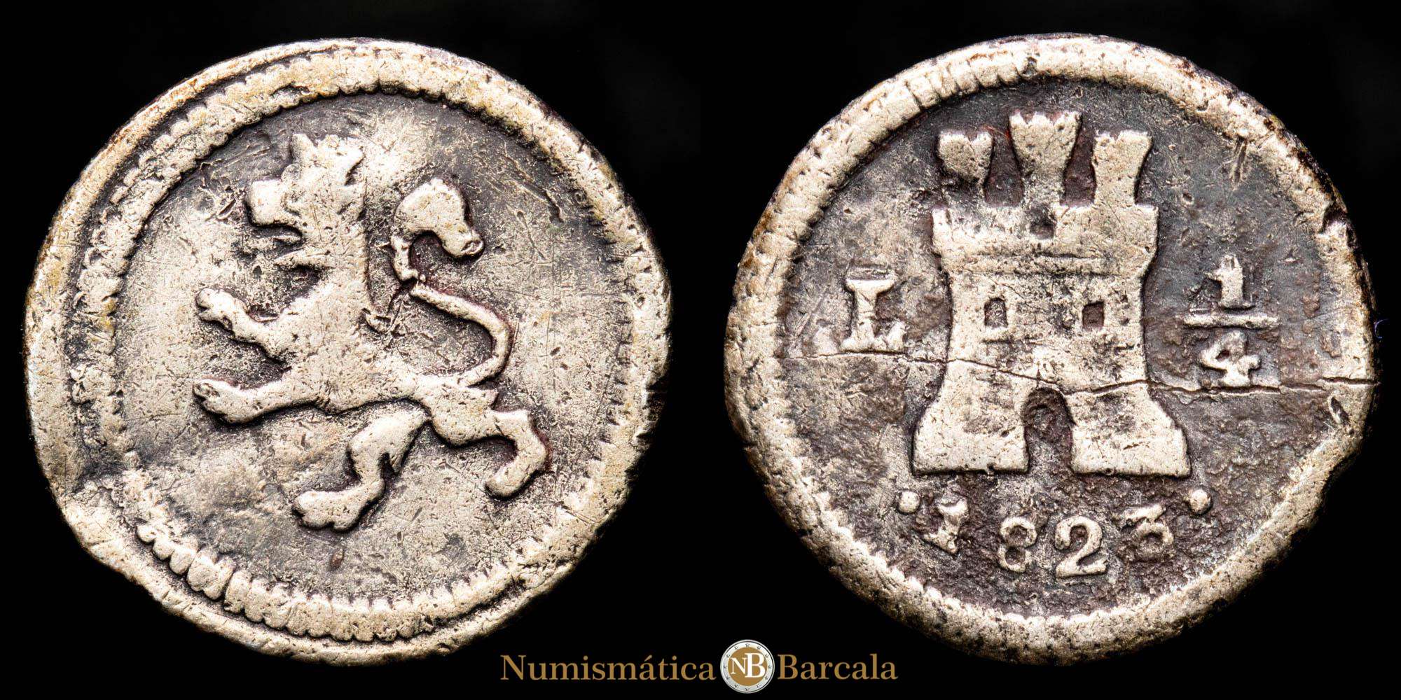 Perú – Fernando VII. 1/4 de Real. (0,84 g.). Lima. 1823. Aureo y Calicó – 1463. VF-30. Escasa