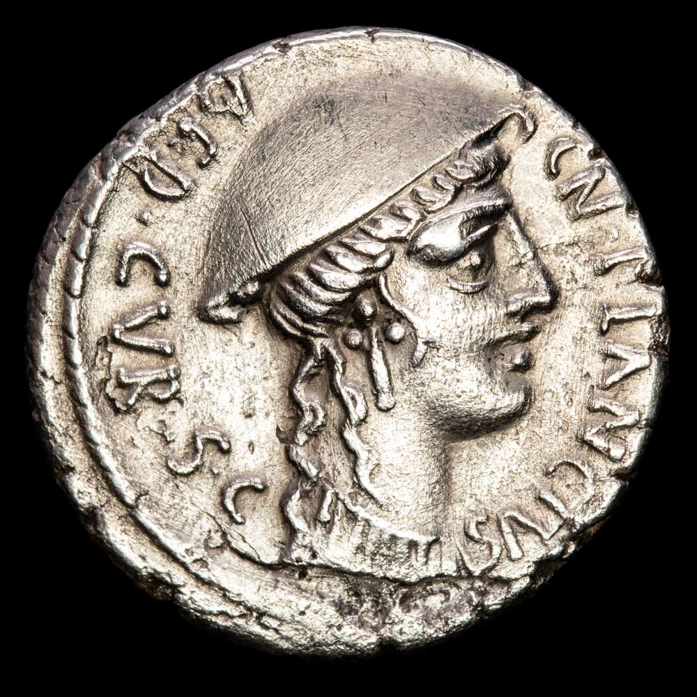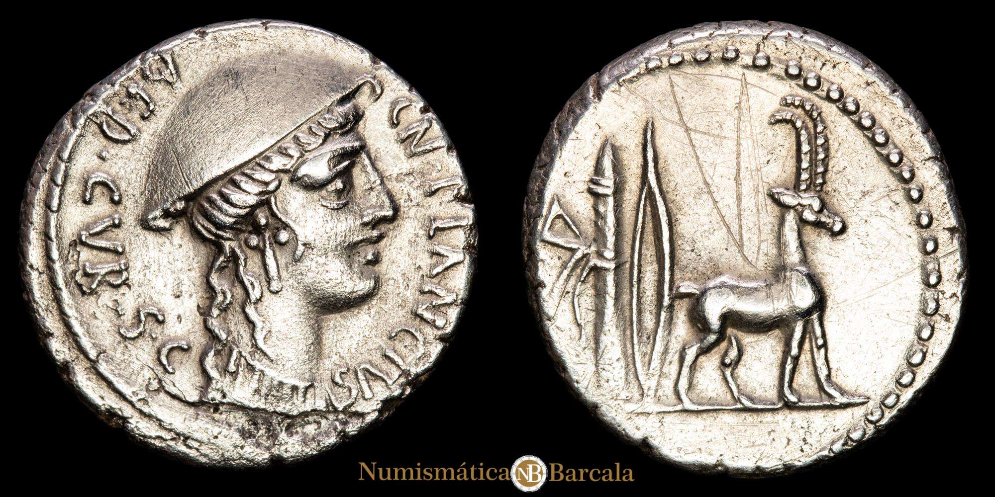 Plancius. Denario. (4g.). Roma. 55 a.C. FFC-991. XF-. CN. PLANCIVS DEA CVR. Cabra. Rayas en reverso.