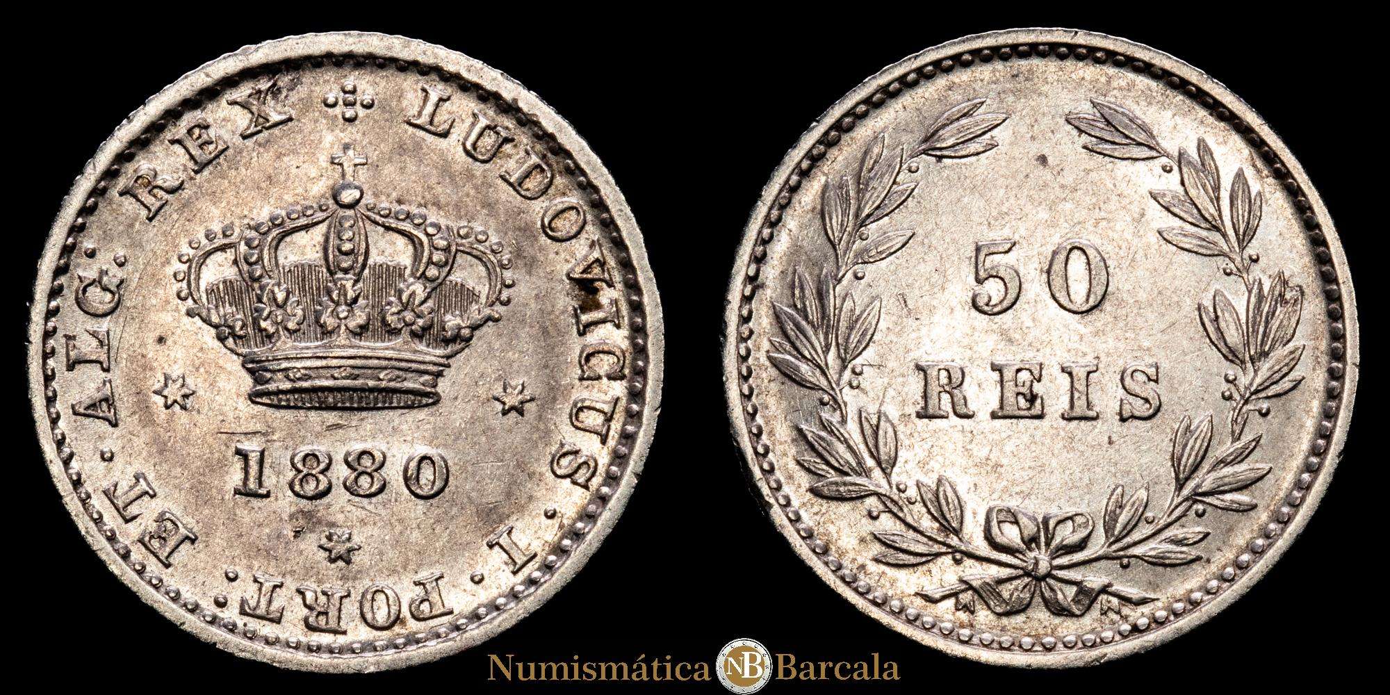 Numismática Barcala > Productos > Portugal, 50 Réis, 1880, Luís I. plata 917, 1,25 g. KM506.2. AU.