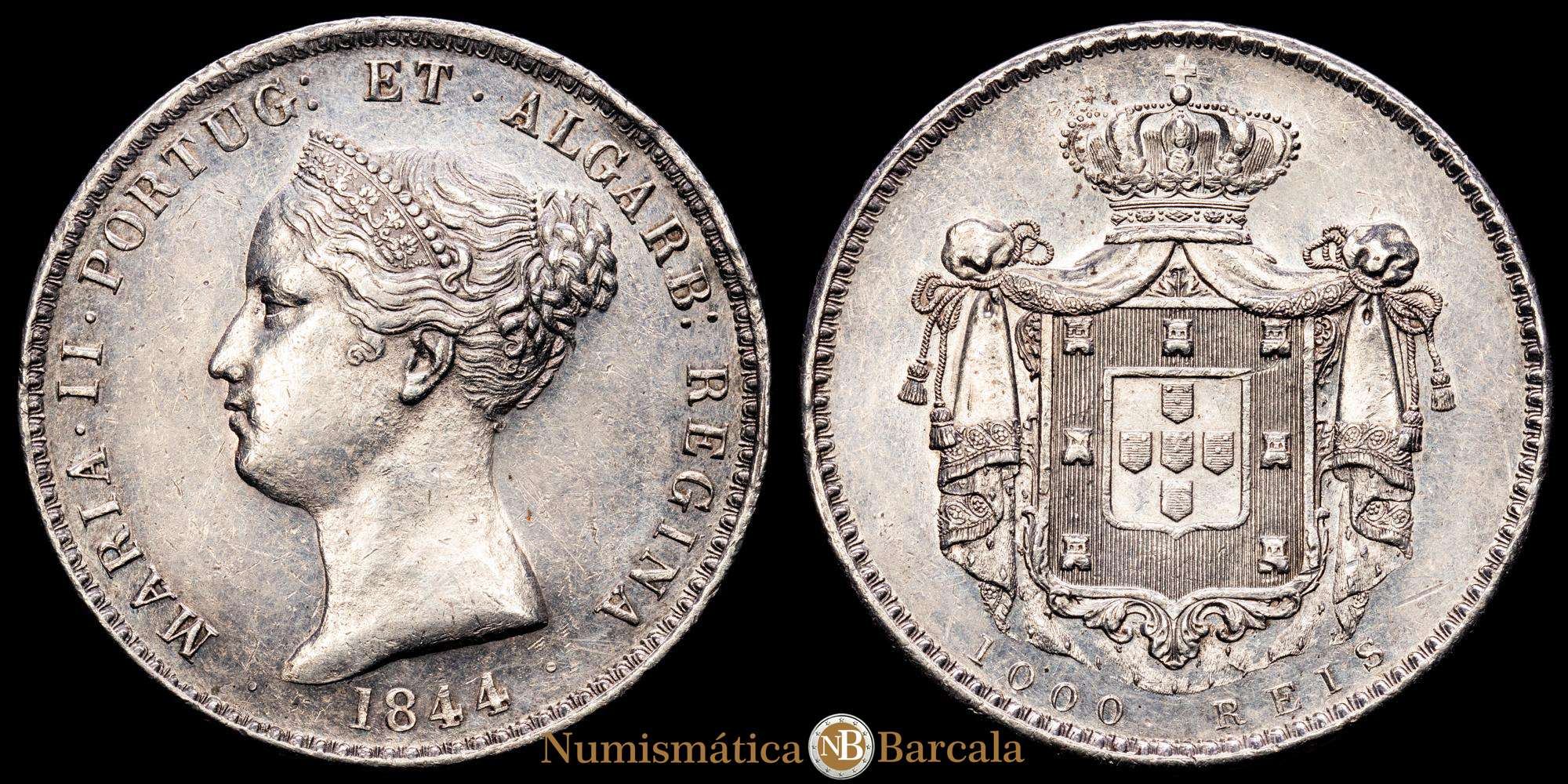 Portugal – Maria II. 1000 Reis. Lisboa. (29,54 g.). 1844. KM-472. Gomes 40.04. R.B.O. MBC+