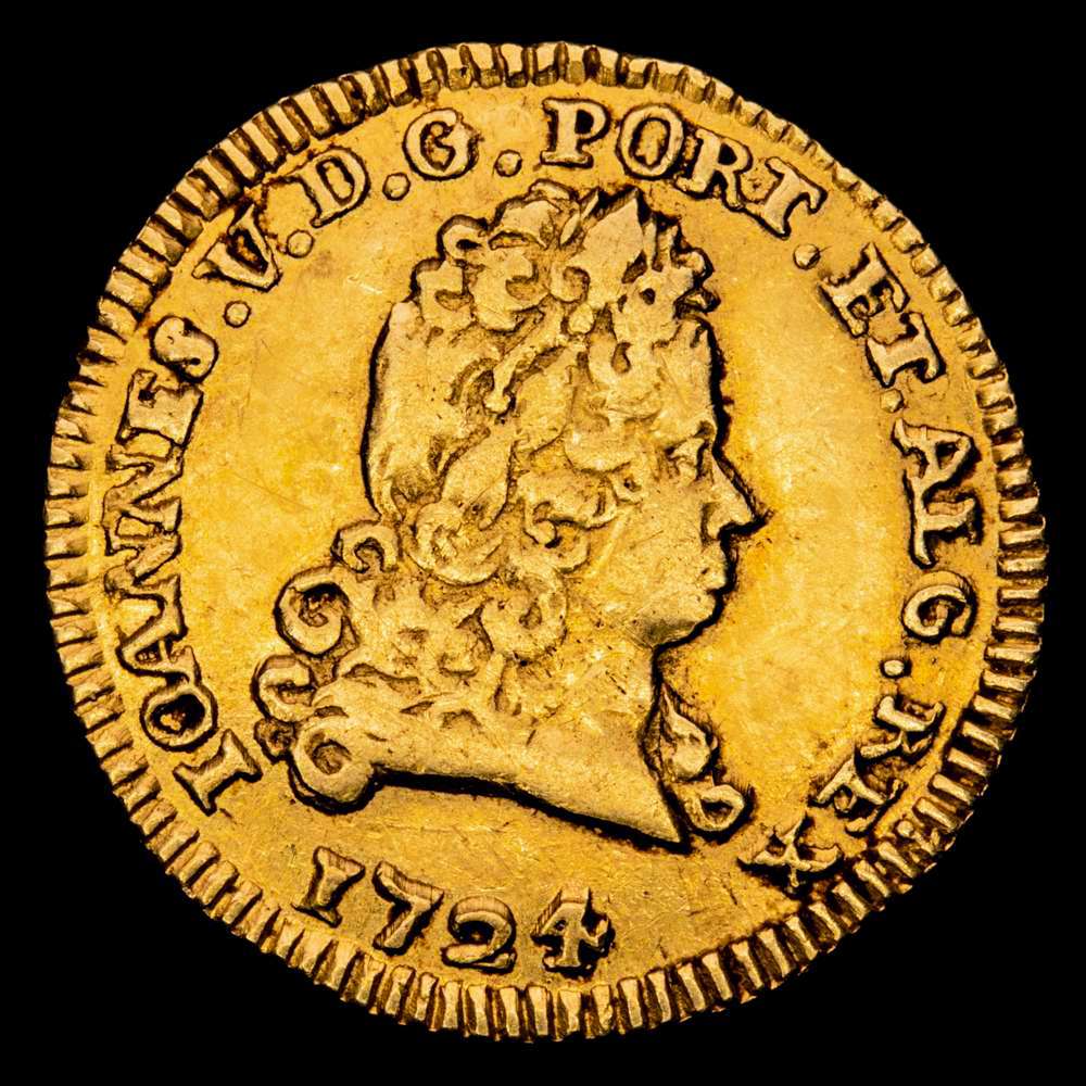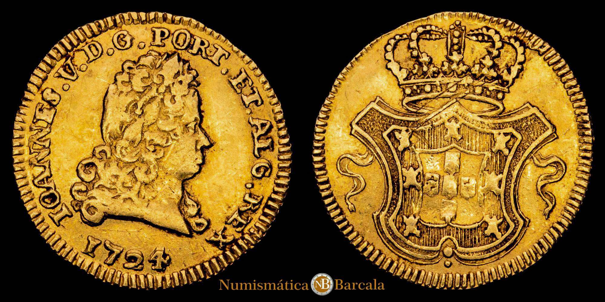 Numismática Barcala > Productos > Portugal, Reino. João V AV 800 Reis (Meo Escudo). Ceca de Lisboa, 1724. Gómez 109,02; km 218,2; Friedberg 92. 1,76 g, 17 mm, 12 h. VF+. Escasa.