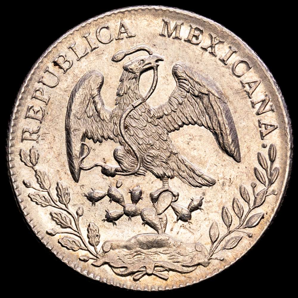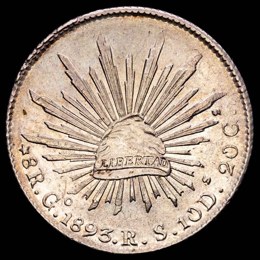 KM# 377.8 (D&P-Go76) – 8 Reales 1893 Guanajuato Go RS. NGC AU58. – Parte de brillo en ambos lados.