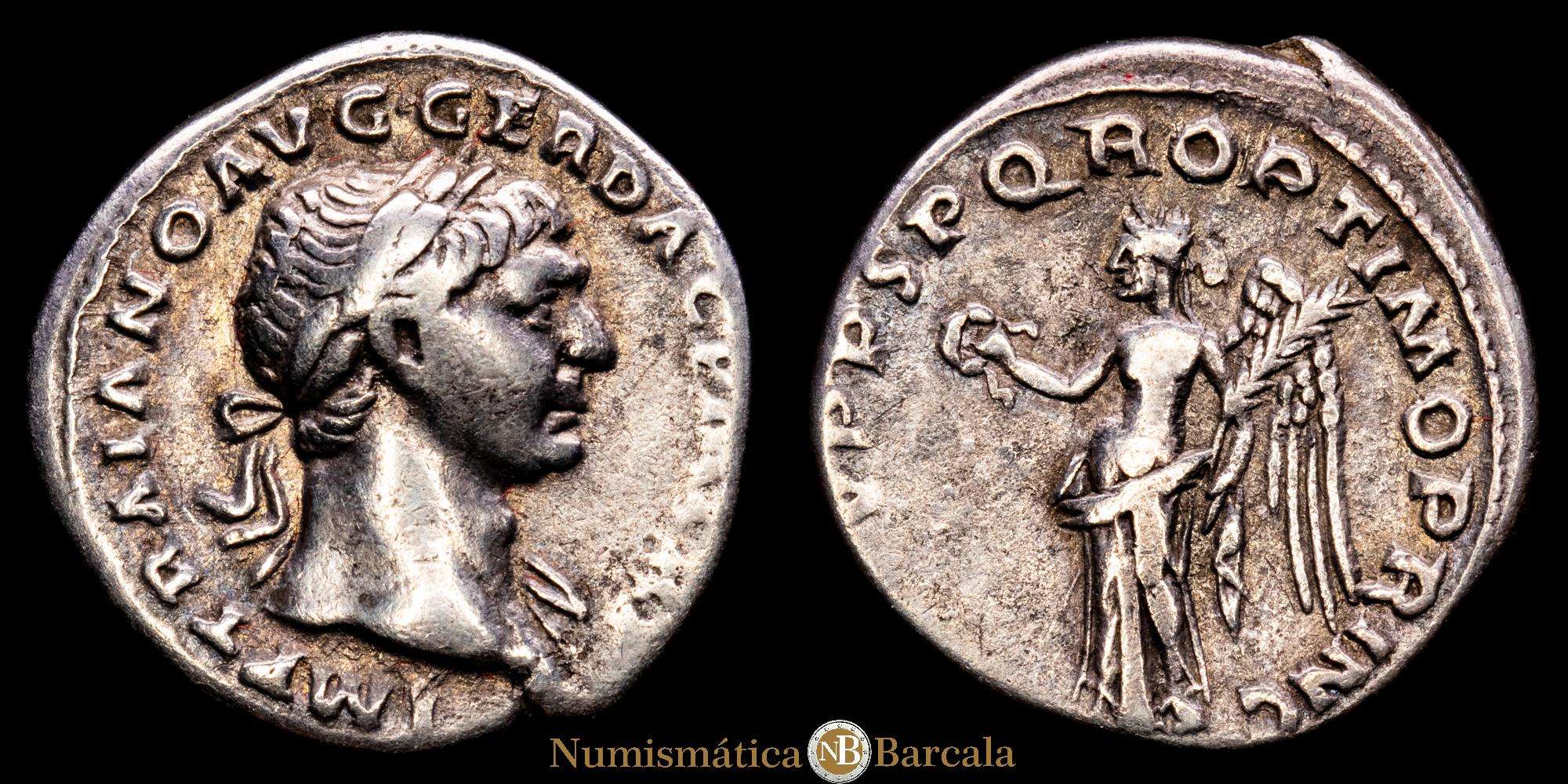 Numismática Barcala > Productos > rajano. Denario. 107-108 d.C. Roma. (Ric-II 128). (Woytek-270b). (Bmcre-328). Ag. 3,08 g. MBC+.