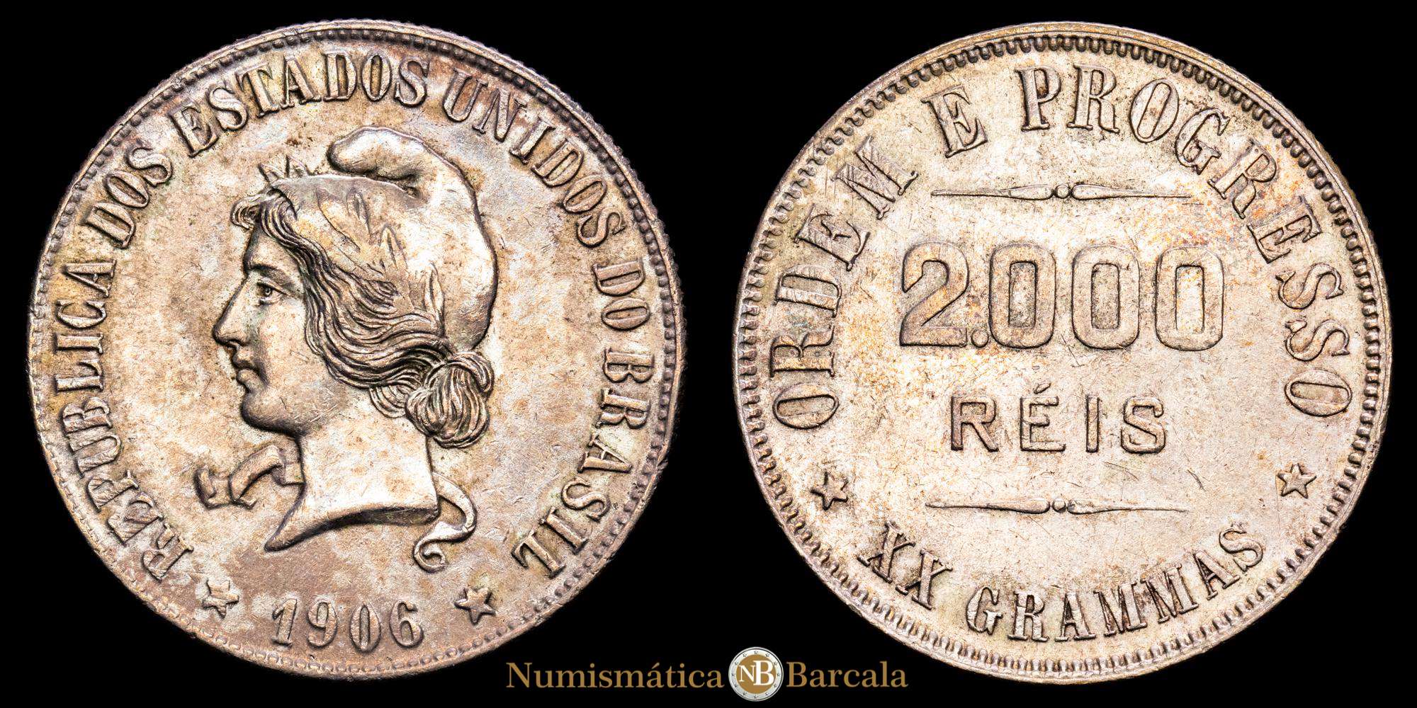 República de Brasil. 2000 Reis. (19,96 g.). 1906. KM-508. VF+. Pátina