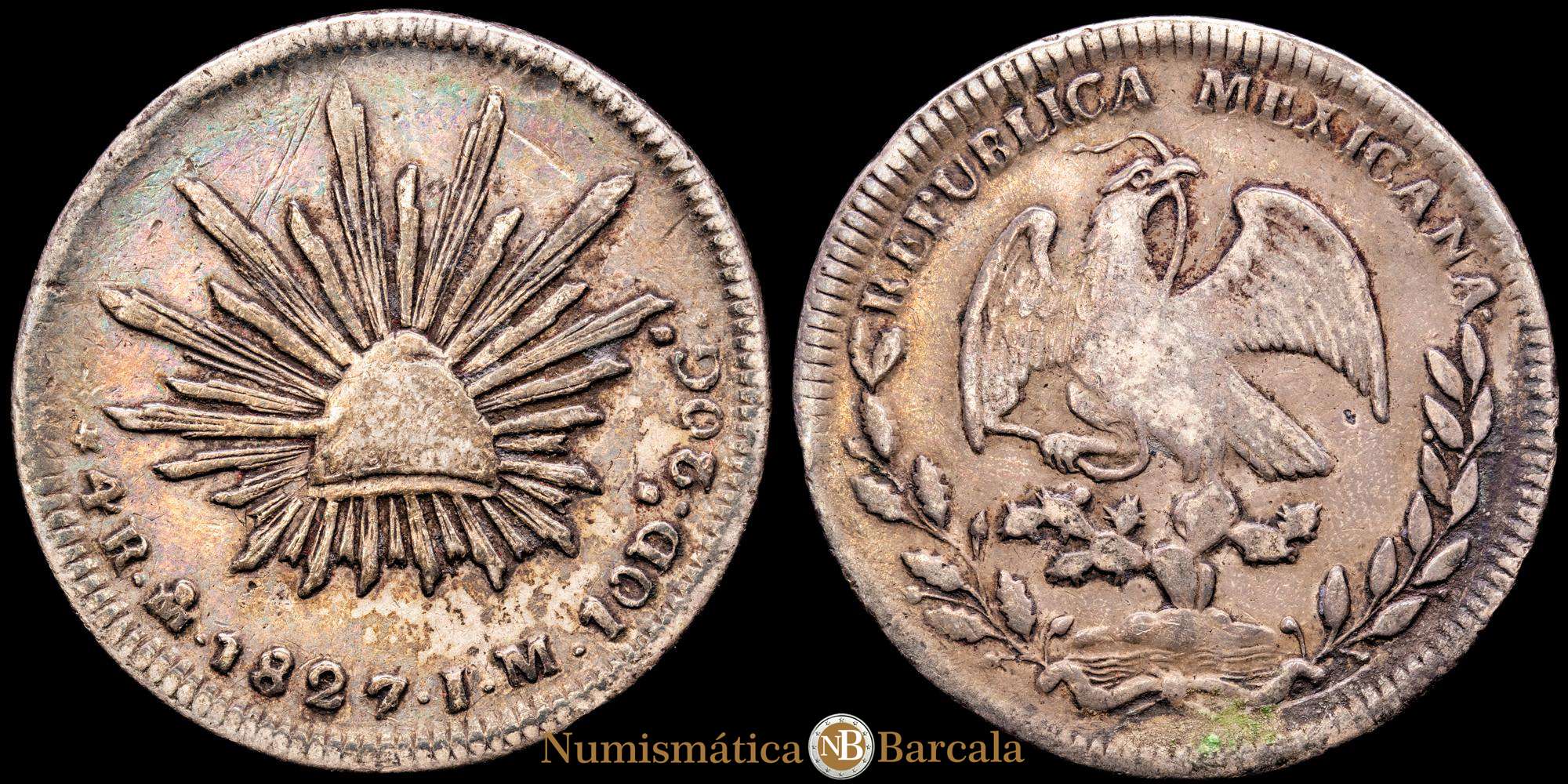 Numismática Barcala > Productos > República de México, 4 Reales, 1827/6 Mo-JM. Casa de Moneda de la Ciudad de México, KM375.6. 13,21 gramos. VF.