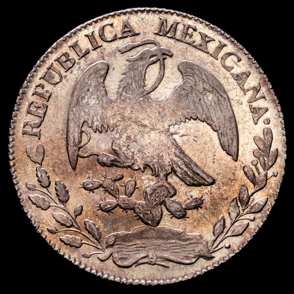 República de México. 8 Reales. (26,61 g.). Zacatecas. 1863. M·O. (KM. 377.11). Parte de brillo original. AU. Suave pátina.