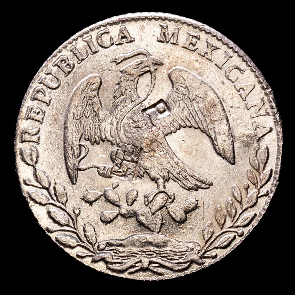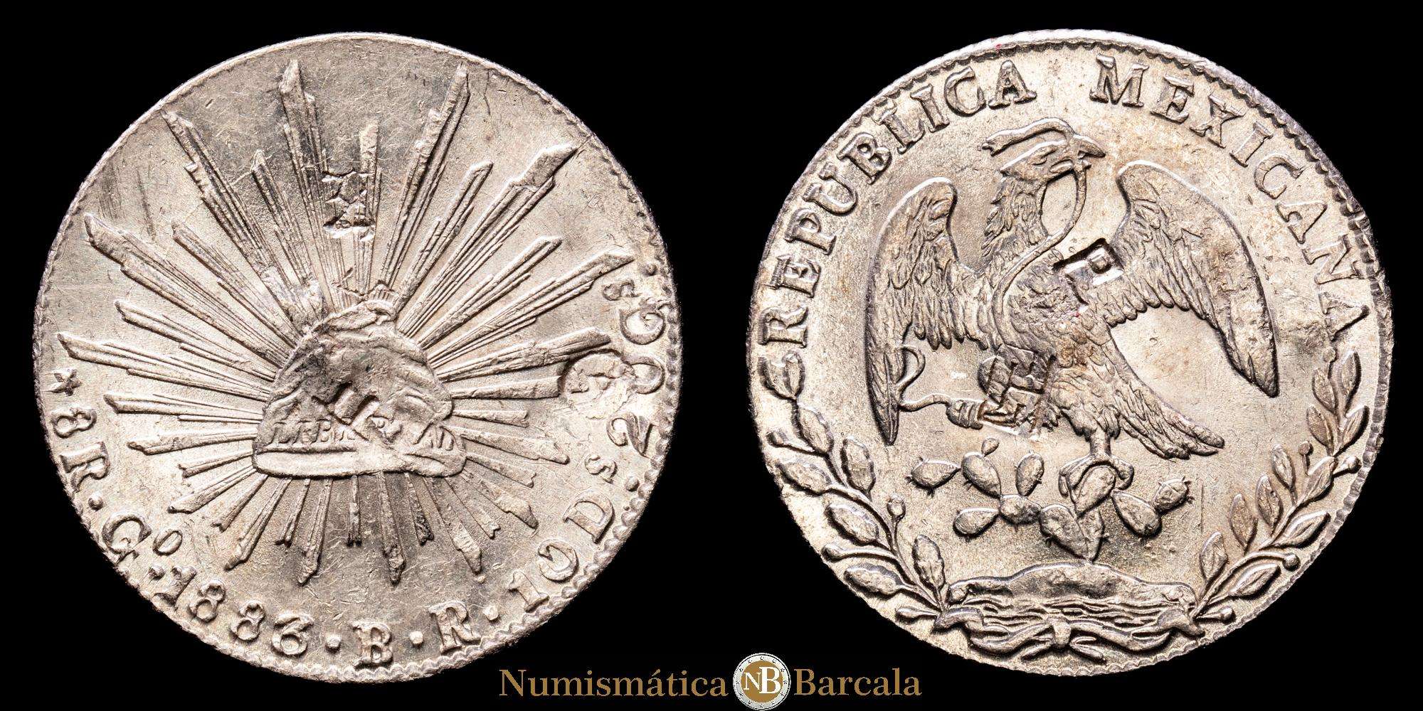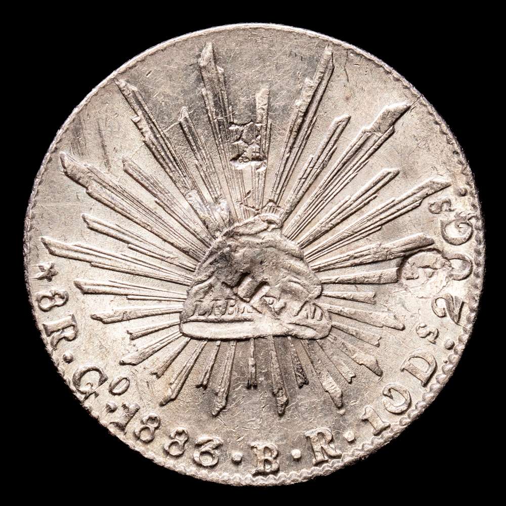 Numismática Barcala > Productos > República de México. 8 Reales. (27,01 g.). Guanajuato. 1883. B·R. (KM 377.8). AU. Resellos chinos.