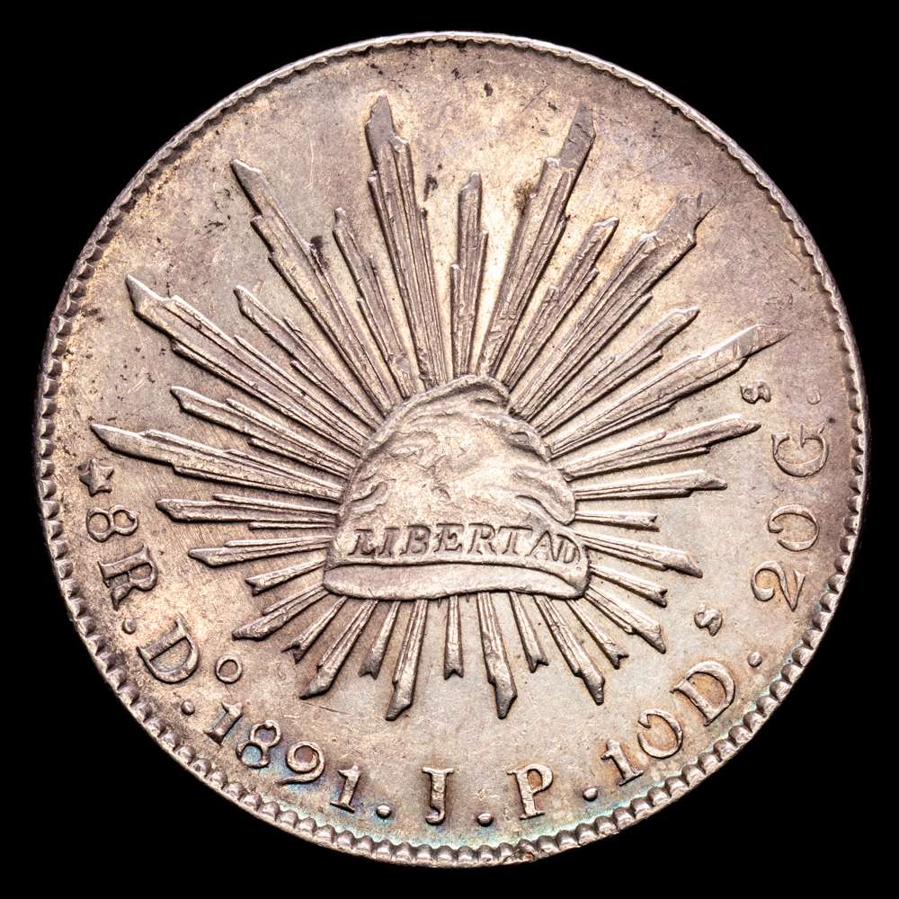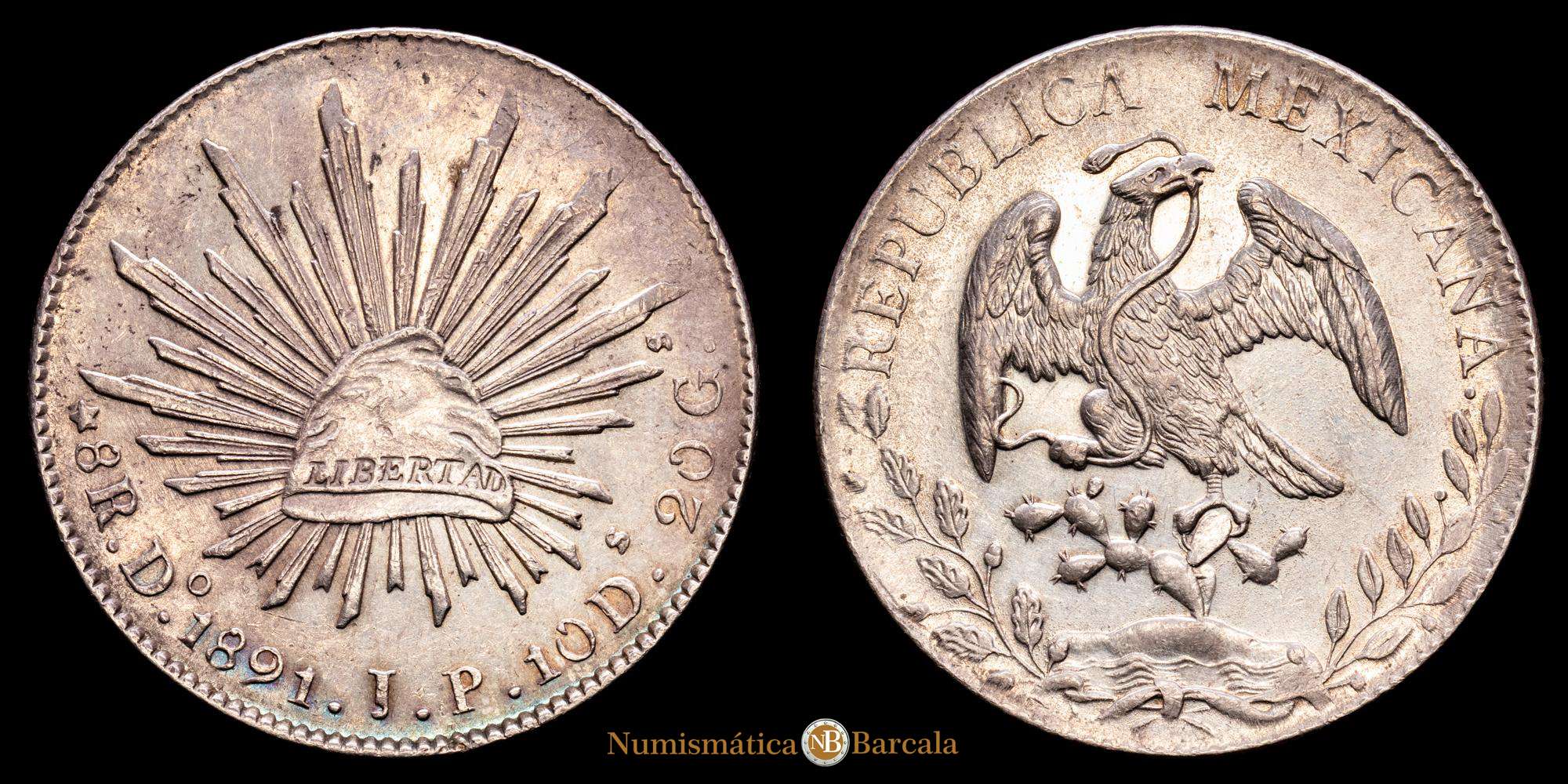 Numismática Barcala > Productos > República de México. 8 Reales. (27,95 g.). Durango. 1891. J·P. KM-377.4. Ligera pátina. XF.