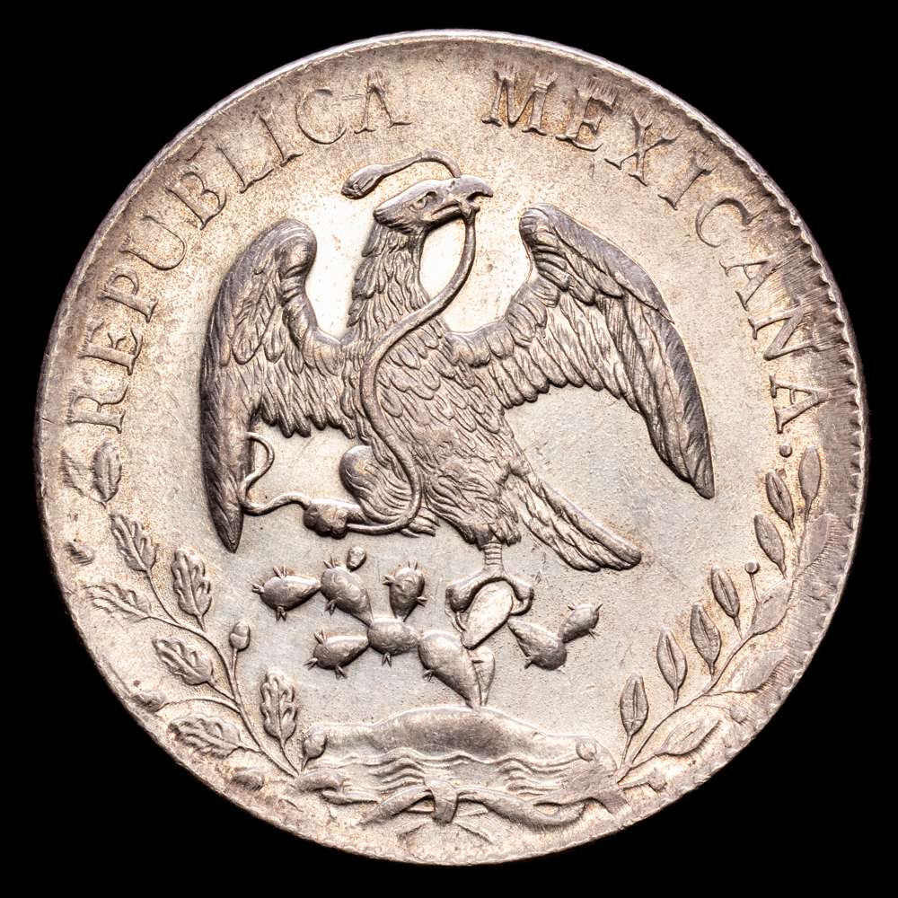 República de México. 8 Reales. (26,94 g.). Zacatecas. 1856. Ensayador M·O. KM-377.13. EBC+. Parte de brillo original.