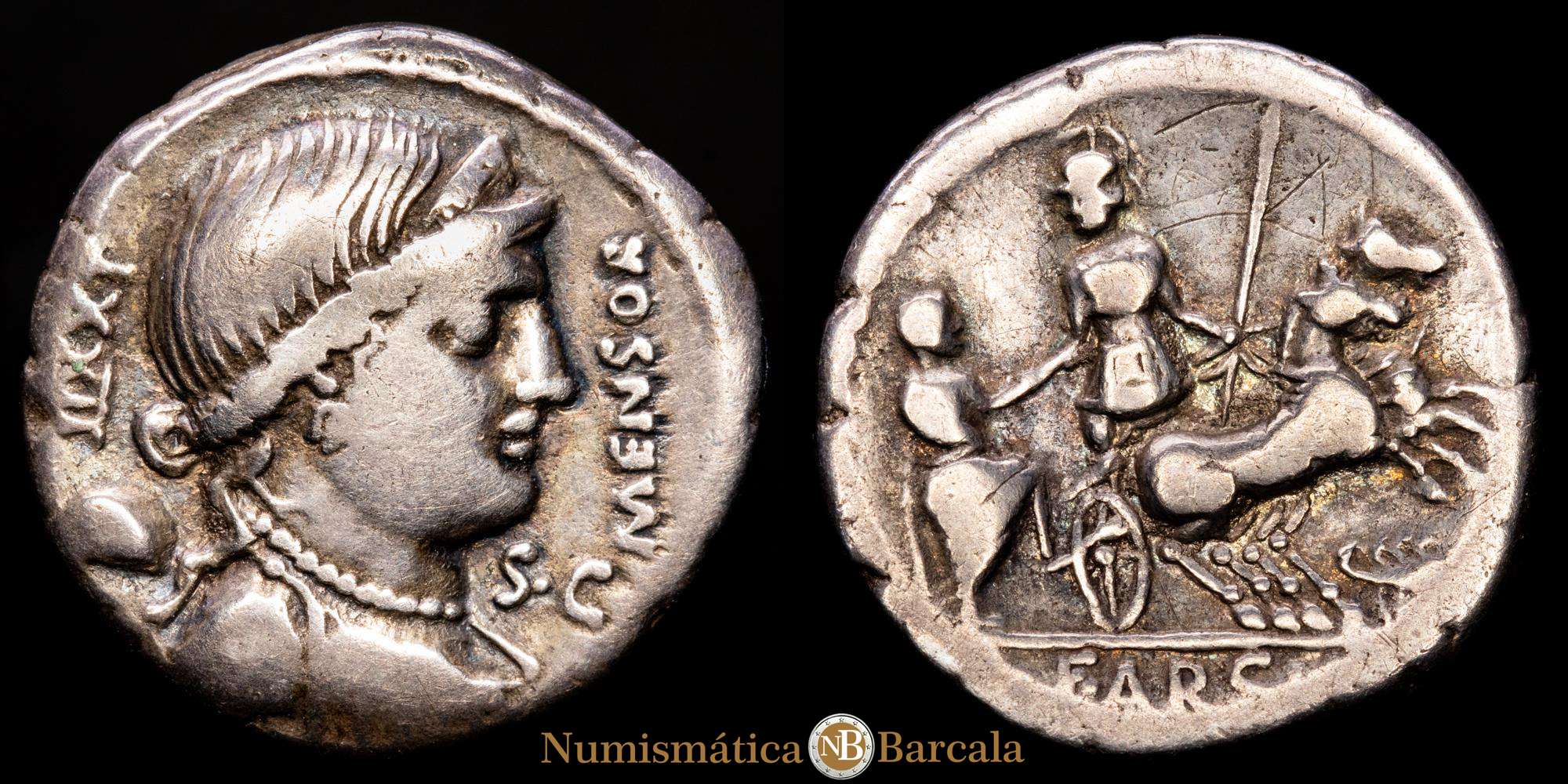 Numismática Barcala > Productos > República – L. Farsuleius Mensor. Denario. (3,66 g.). Roma. 75 B.C.. (FFc-707). (Craw-392/1a). (Cal-578). Ag. 3,66 gramos. Tono suave. MBC.