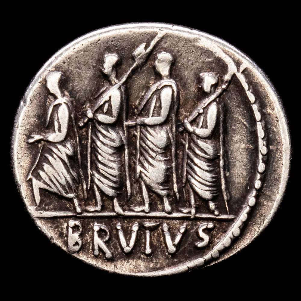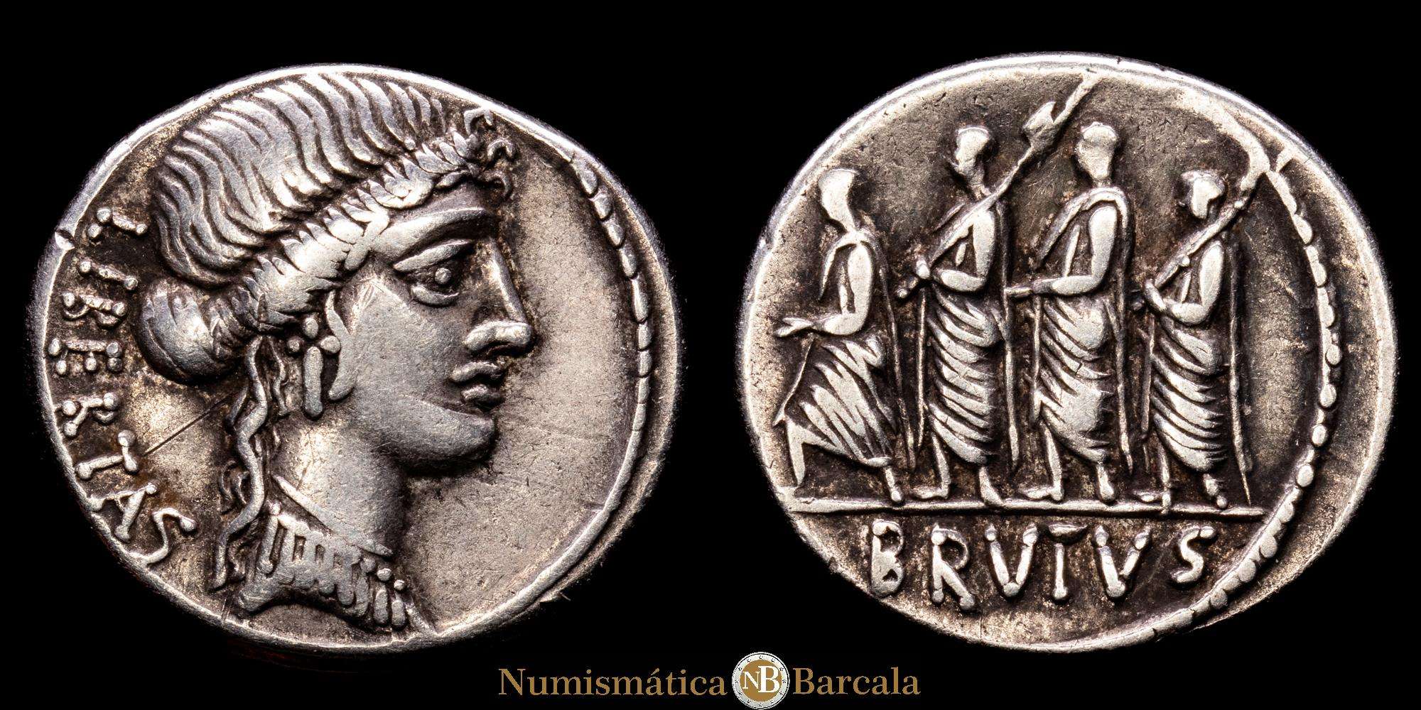 Bruto afirmaba descender del cónsul Bruto el Viejo, quien había puesto fin a la realeza en Roma. El reverso de este denario fue tomado por Cosón, rey de los escitas, en el reverso de sus estáteros acuñados entre el 43 y el 42 a. C.