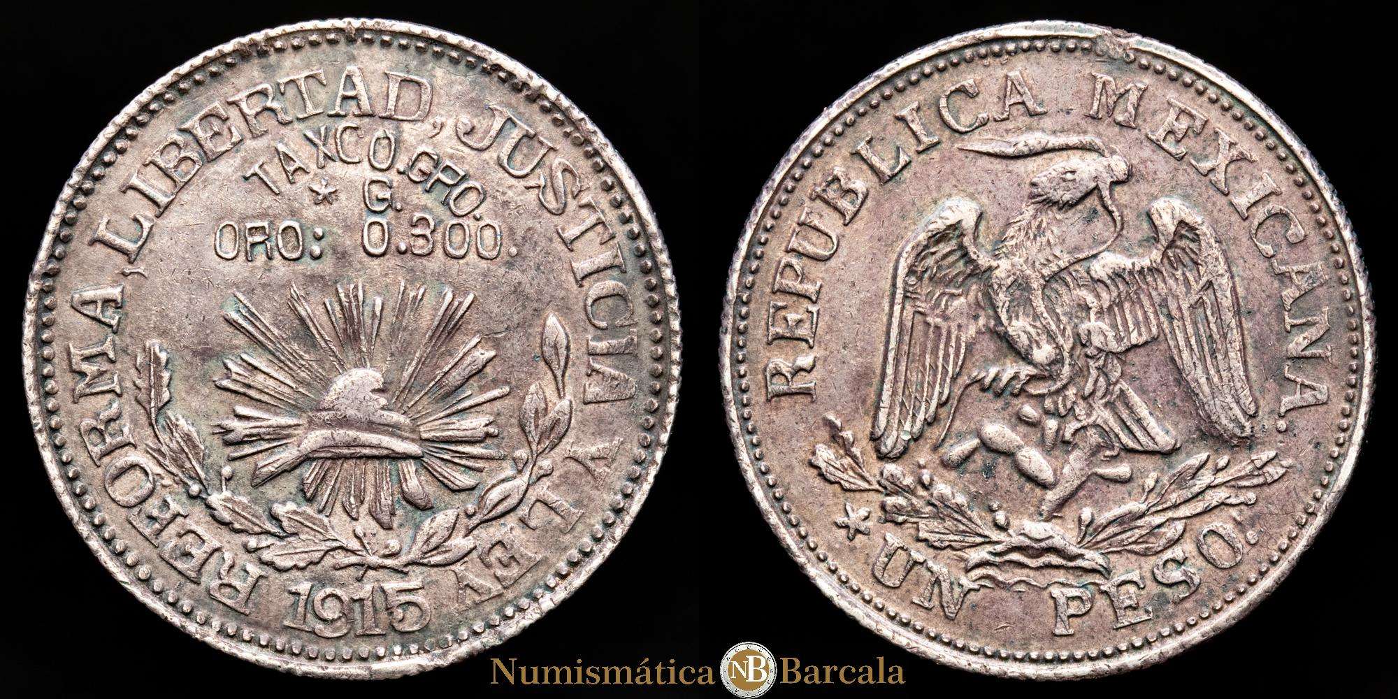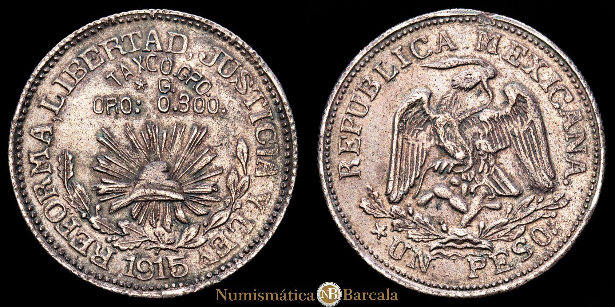 Numismática Barcala > Productos > REVOLUCIÓN. 1 Peso. (12,58 g.). Taxco. 1915. KM# 672 (GB231) , Guerrero. Buena acuñación, Bella pátina oscura. EBC.