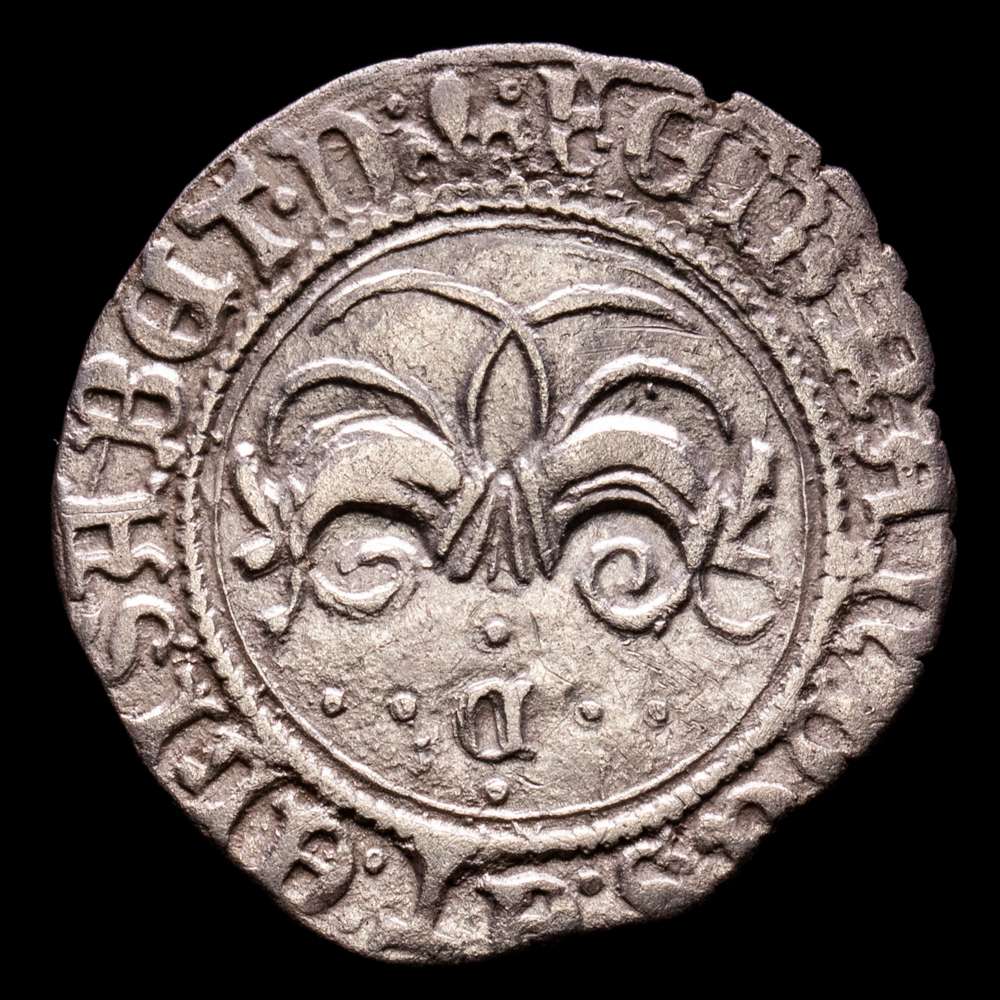 Reyes Católicos. Fernando e Isabel (1474-1504). Cuenca. 1/2 real. (AC.211). 1,77 gramos. A/ FERNANDVS; ET; ELISABET: DE:. R/ G:REX:ET:REGINA:CASTA:L:A:. Buen ejemplar. Muy rara. EBC.