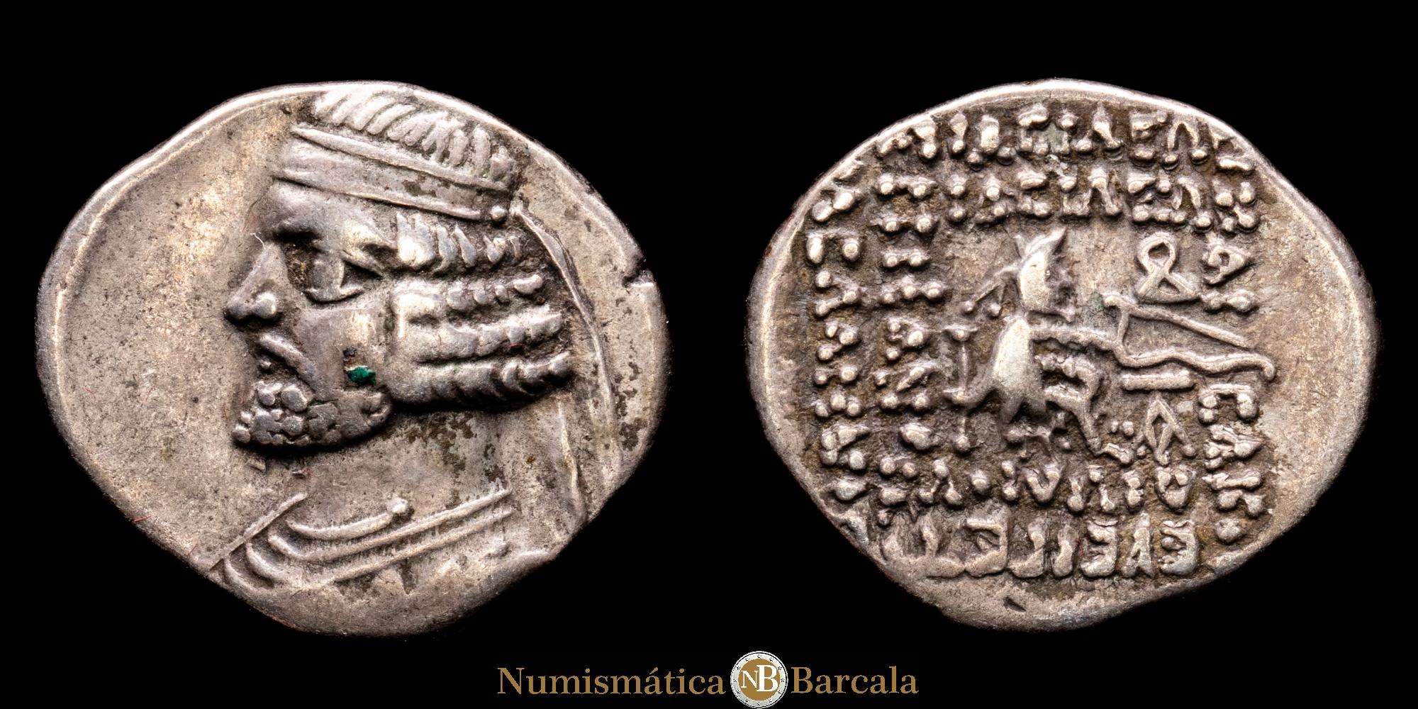 Numismática Barcala > Productos > REYES DE PARTIA, Griega Oriental. Orodes II, circa 57-38 a. C. Dracma (Plata, 4,01 g, 12 h), Kangavar. Sellwood 45.32. Muy rara. VF+.