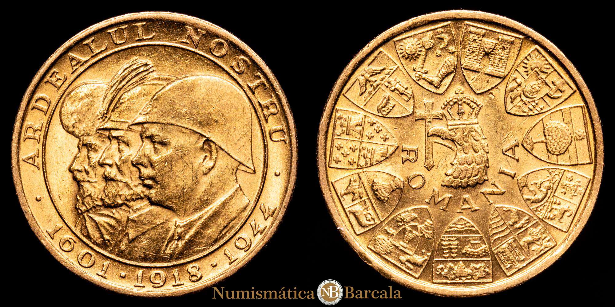 Rumania. 20 lei. 1944. Miguel I. (Km-13). Fr-21; X-M13. Au. 6,54 gramos. UNC-.