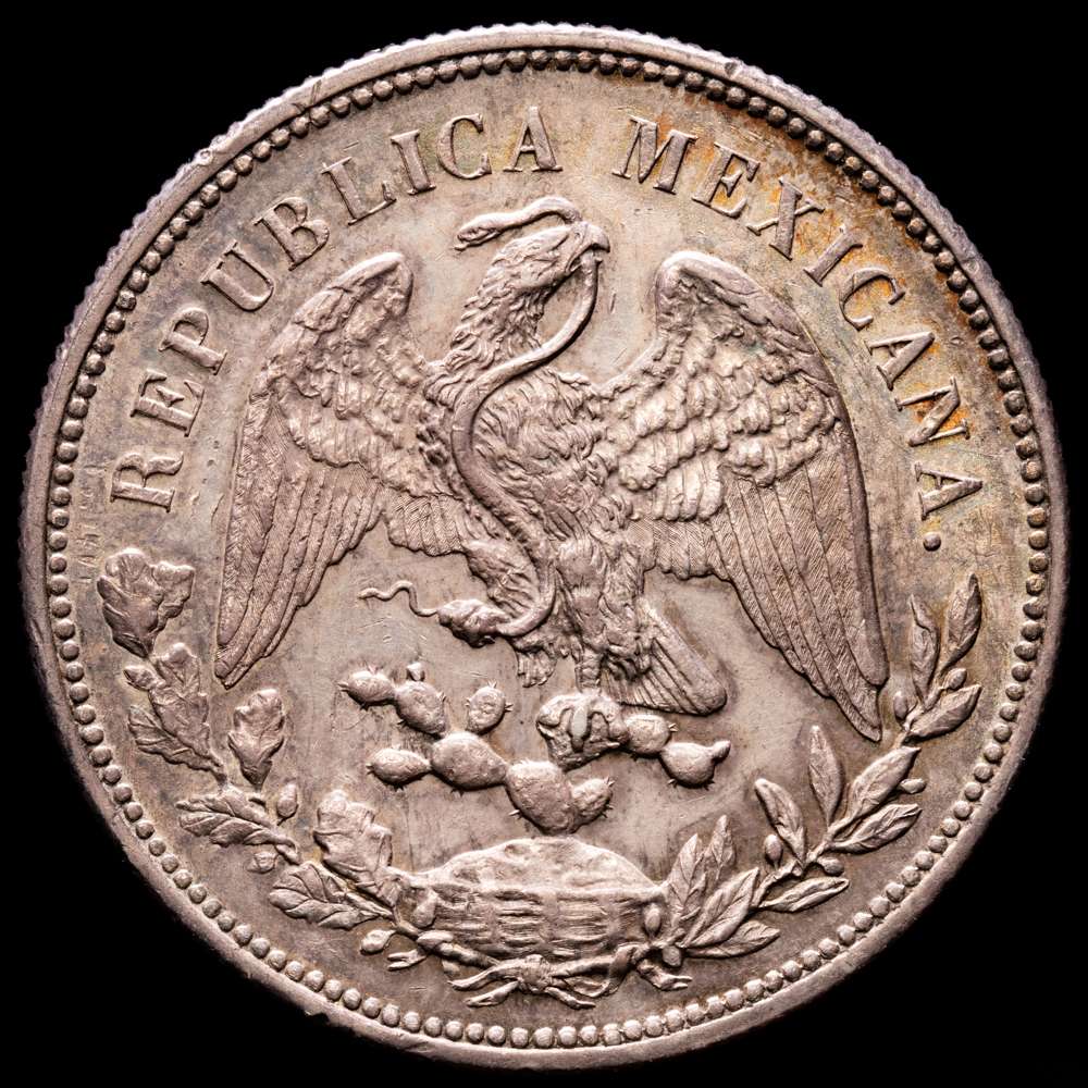 República de México. 8 Reales. (26,77 g.). Zacatecas. 1875. Ensayador J·A. KM-379.13. XF. Bella pátina de monetario antiguo