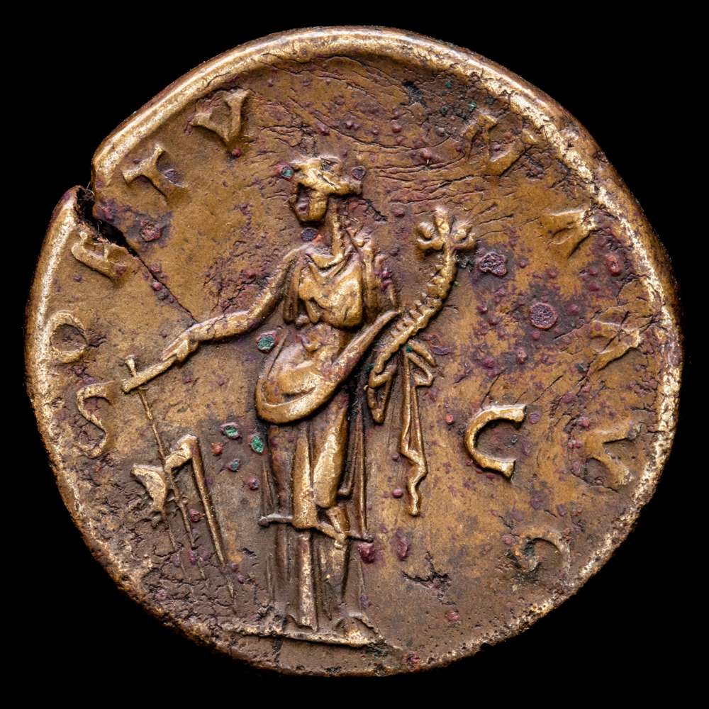 Sestercio. 134-138 d.C. ADRIANO. Anv.: HADRIANVS AVG. COS. III P. P. Busto laureado a derecha. Rev.: FORTVNA AVG. S. C. Fortuna en pie a izquierda con cornucopia y timón. C-772; RIC-760. 29,75 grs. AE. VF+.