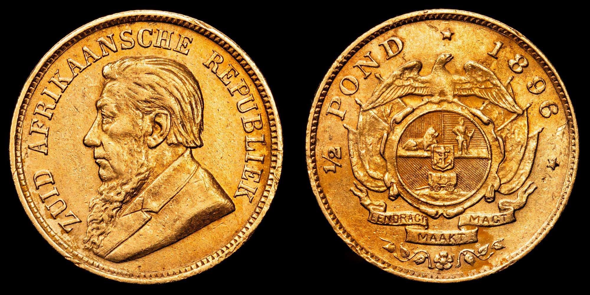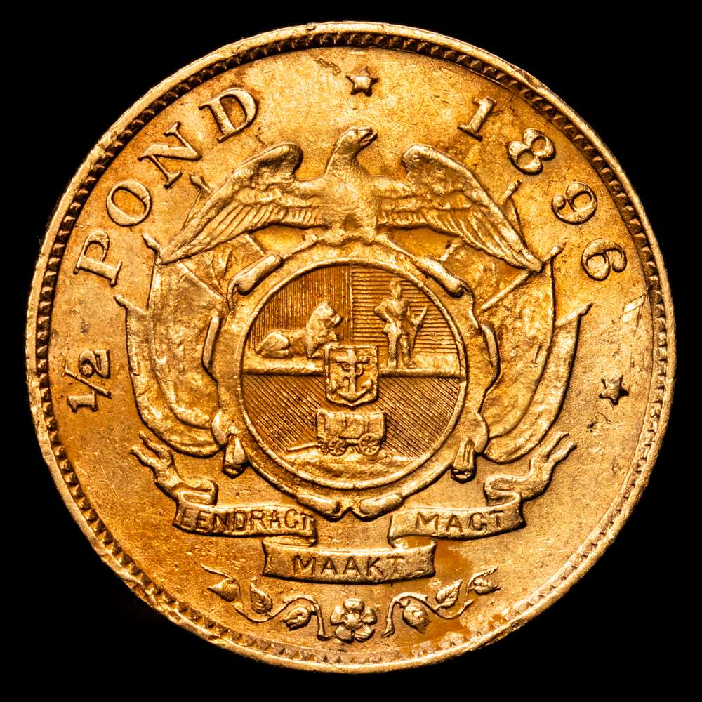 Sudáfrica. 1/2 Pound. (3,96 g.). 1896. KM-9.2. VF+. cantidad