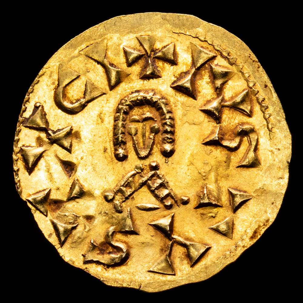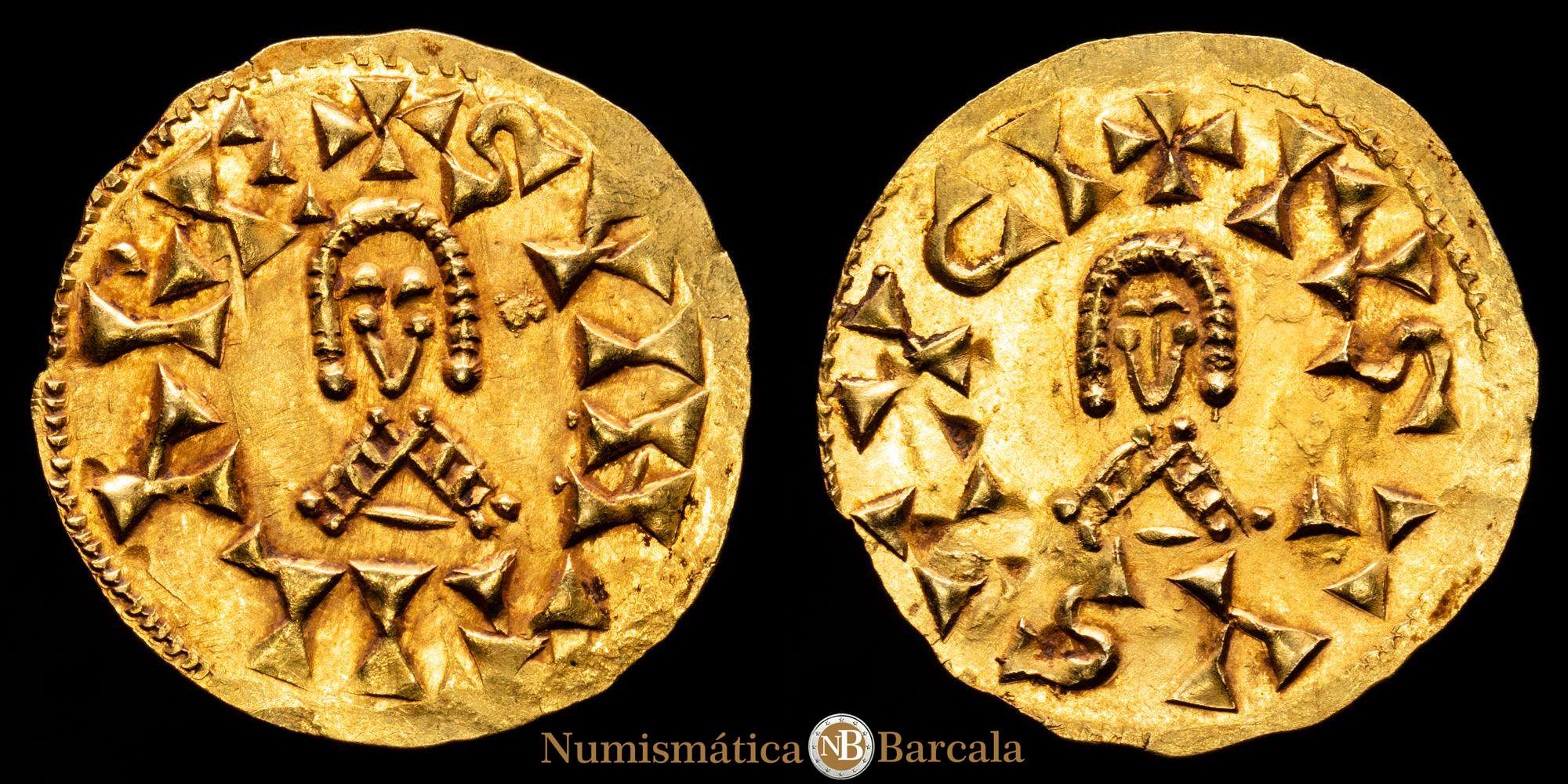 Suinthila (621-631). Tremisis. Tucci (Martos). (Cnv-290). (R. Pliego-387a4. mismo ejemplar). Anv.: +SVINTHILRE. Rev.: +IVSTVSTVCI. Ag. 1,40 gramos. Atractiva. Brillo original. EBC+.
