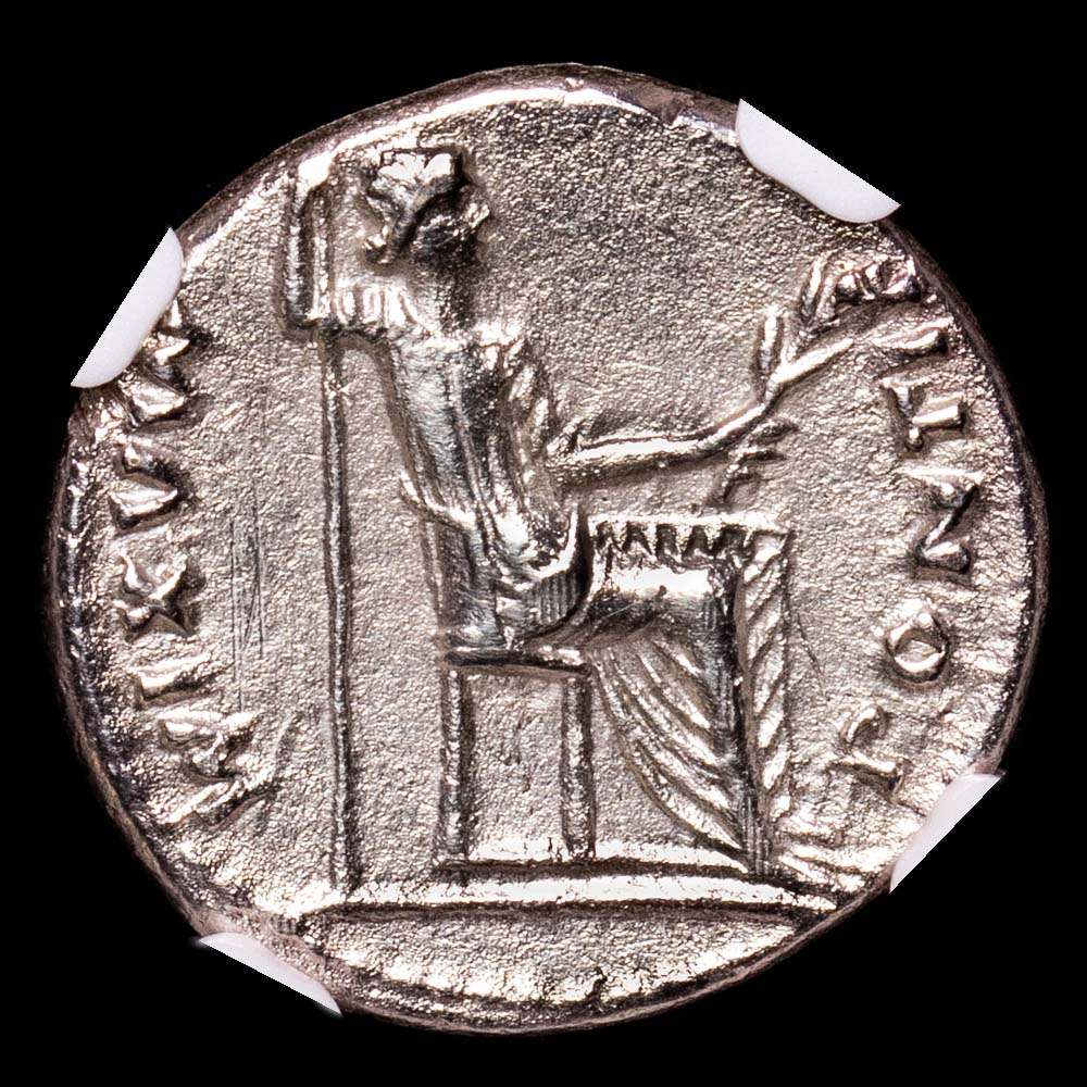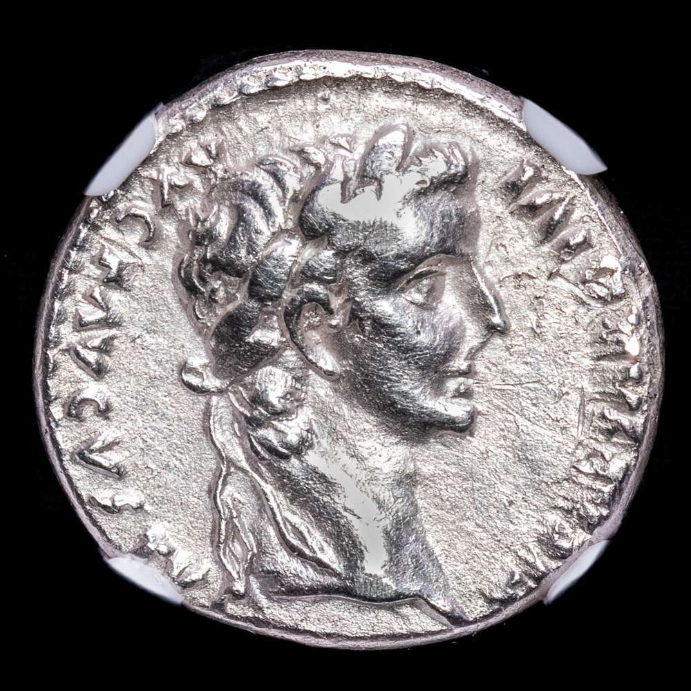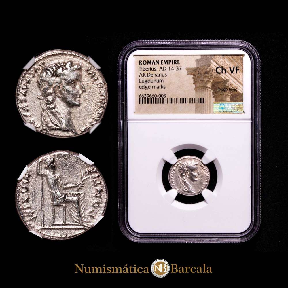 Tiberio. Denario. Lugdunum. 14-37 d.C. RIC-30. Encapsulada por NGC como Ch XF.