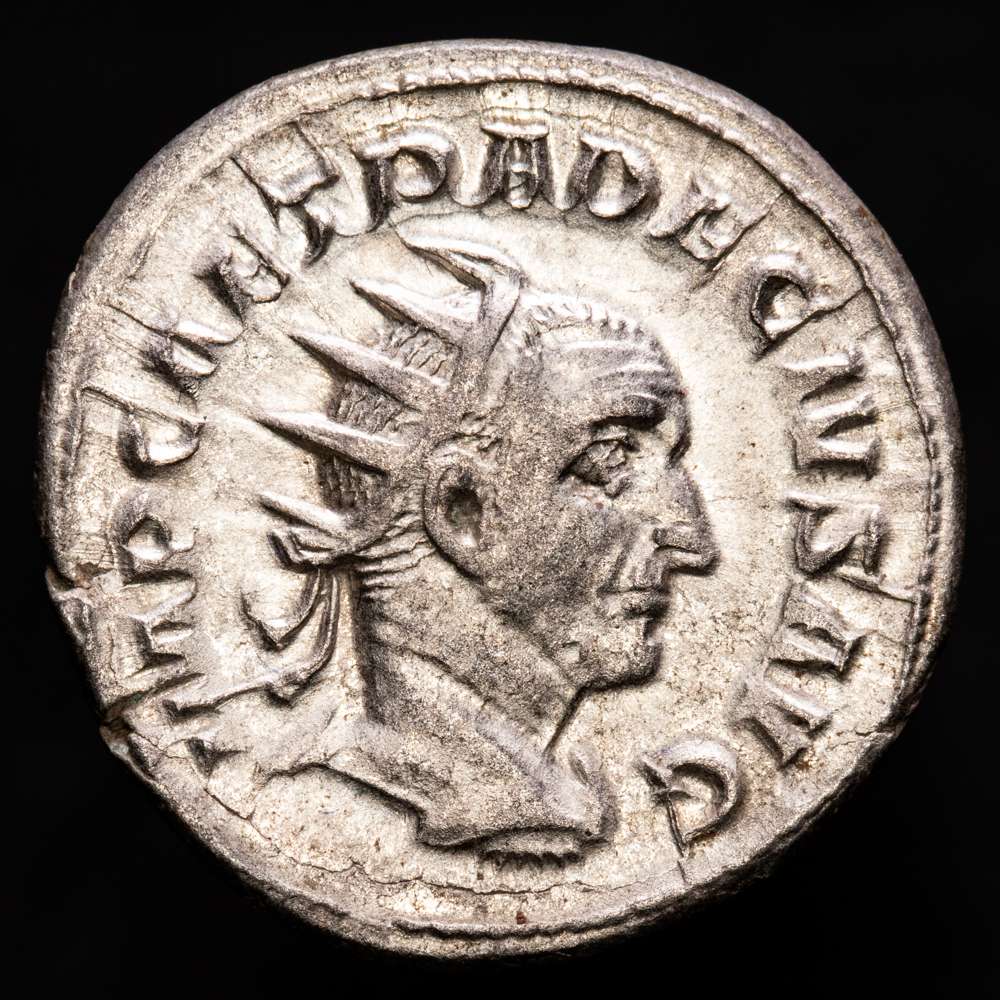 Trajano Decio. 249-251 d. C. Antoniniano de plata (21,5 mm, 3,40 g). Roma, 2.ª officina. 6.ª emisión, 251 d. C. RIC IV 38b; RSC 44. Encapsuldo por NGC como AU Strike: 5/5, Surface: 3/5.
