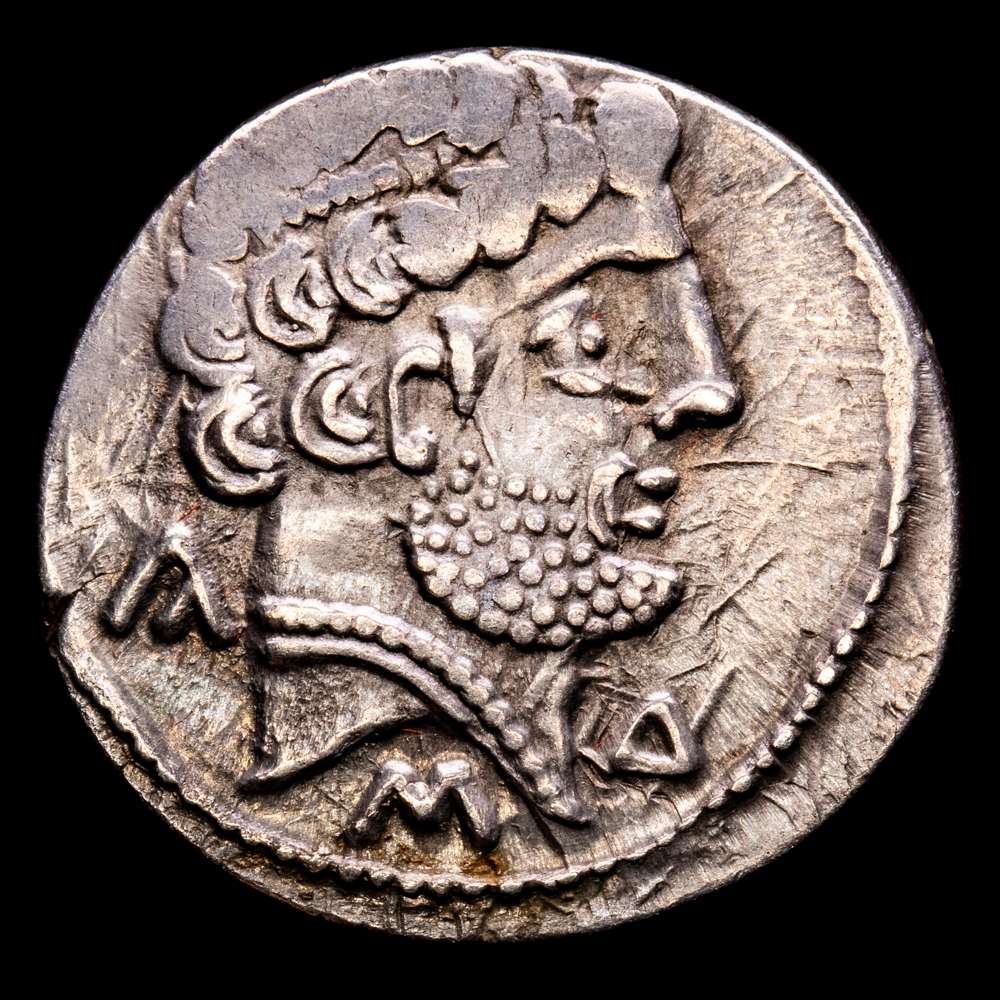 Turiasu. Denario. 120-20 a.C. Tarazona (Zaragoza). (Abh-2417). (Acip-1720). (C-33). Anv.: Cabeza barbada a derecha con peinado en 2 niveles por encima de la oreja, alrededor KA, S y TU. Rev.: Jinete con lanza a derecha, con la patas traseras encogidas, debajo TURIASU. Ag. 3,65 grs. MBC+.